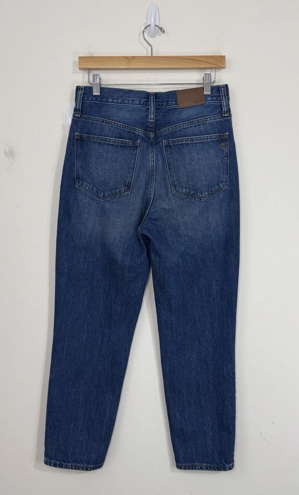 Condition: Pre-owned: Good used conditions. (Please see pictures for exact conditions) Brand: Madewell Style: The Mom Jean Size: 27 Color: Stratfield Blue Material: 100% Cotton Waist: Approx. 14.0” Hips: Approx. 17.5” Front Rise: Approx. 13.0” Inseam: Approx. 26.0” Leg Opening: Approx. 6.0” Features: -Zip and button closure -High rise with slight slouch, roomy through hip and thigh -Tapered leg -Medium wash -5 pocket design -Machine wash Please see measurements and pictures to be sure of fit. Size may change from previous washing. Waist is measured from front left side seam to front right side seam. Rise is measured from the end of the crotch seam to the middle front waistband. Inseam is measured from the end of the crotch area to the end of the leg opening. All measurements are approximate and measured flat across.