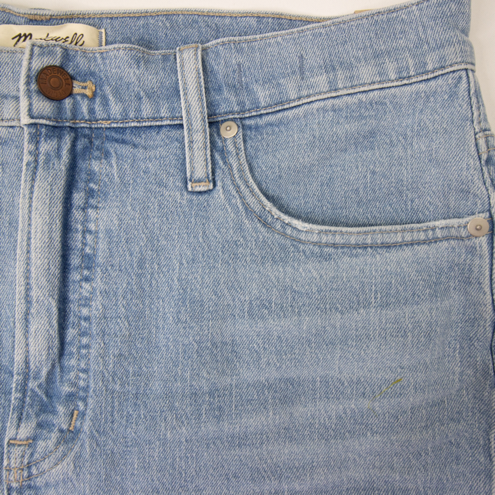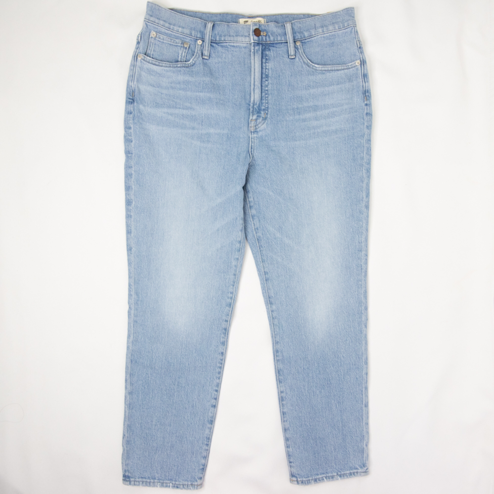 Straight leg, Perfect vintage, high waist, light blue jeans in Marian wash by Madewell, NWT, size 32. With their waist-accentuating high rise and tapered legs, these are mom jeans (if your mom was a '90s supermodel). • Approx. laid flat measurements: • Waist: 18 in • Front rise: 13 in • Inseam: 26 3/4 in • Leg opening: 7 in • • Zip fly with button closure • Five-pocket style • 99% cotton, 1% elastane • Machine wash, tumble dry • Imported MB965