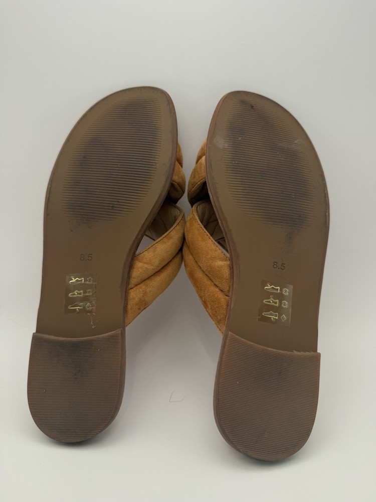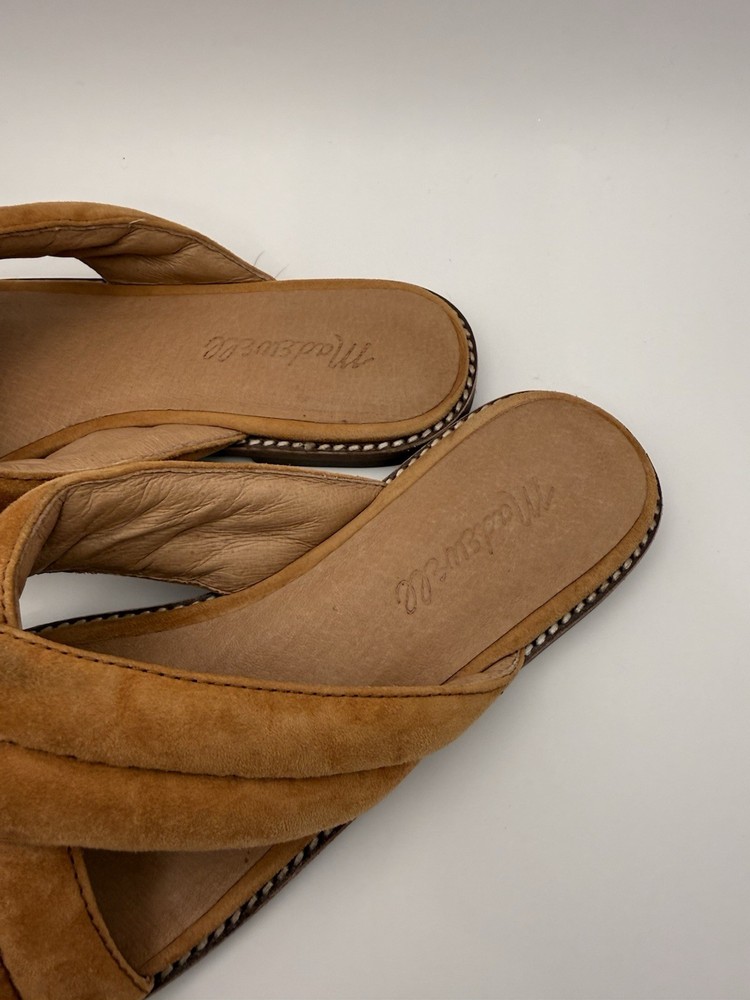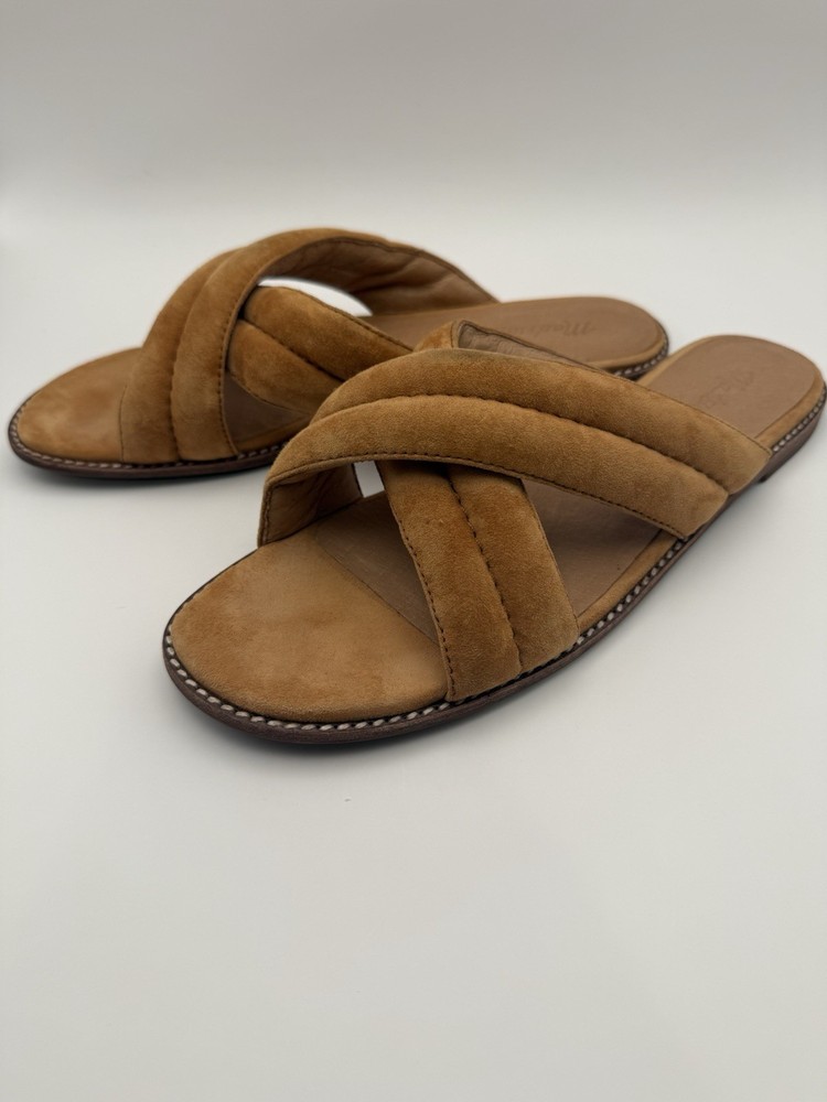 Department: Women Outsole Material: Synthetic US Shoe Size: 8.5 Heel Style: Flat Color: Brown Closure: Slip On Brand: Madewell Style: Slide Insole Material: Leather Features: Straps Occasion: Casual Type: Sandal Upper Material: Suede Pattern: Solid Lining Material: Leather Season: Summer, Spring