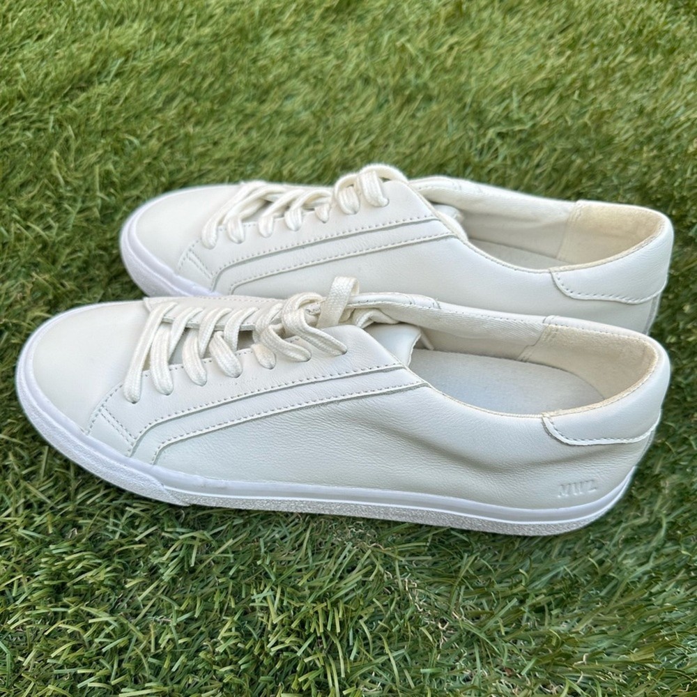 NWT pair of Low Top Lace Up Sneakers by Madewell Style is the Sidewalk Low Color is Pale Parchment (white) Color 8.5 in women Brand new, never worn. Tags still attached to the bottom of the shoes. From the website: “We designed our sneakers with the idea that shoes should be comfortable from the get-go. Made of rich leather, these low-tops have MWL Cloudlift insoles for a supercushy, ultrasupportive fit that feels like walking on a... well, you know… Give a classy look to your every step, made of genuine leather, neutral colorways, and minimalist design for versatile styling options”