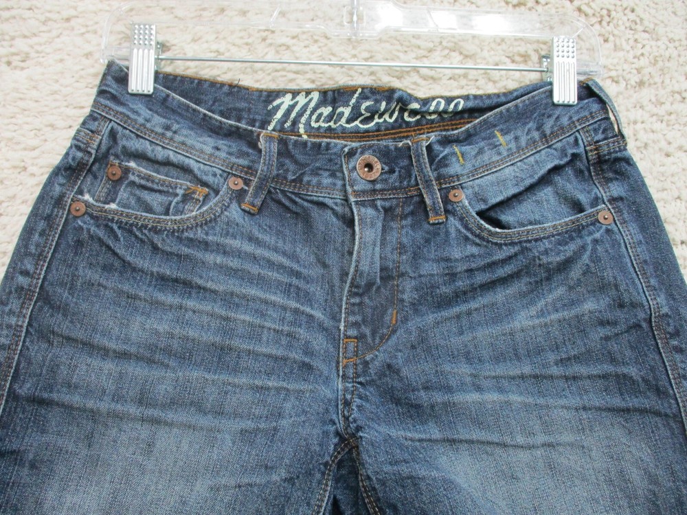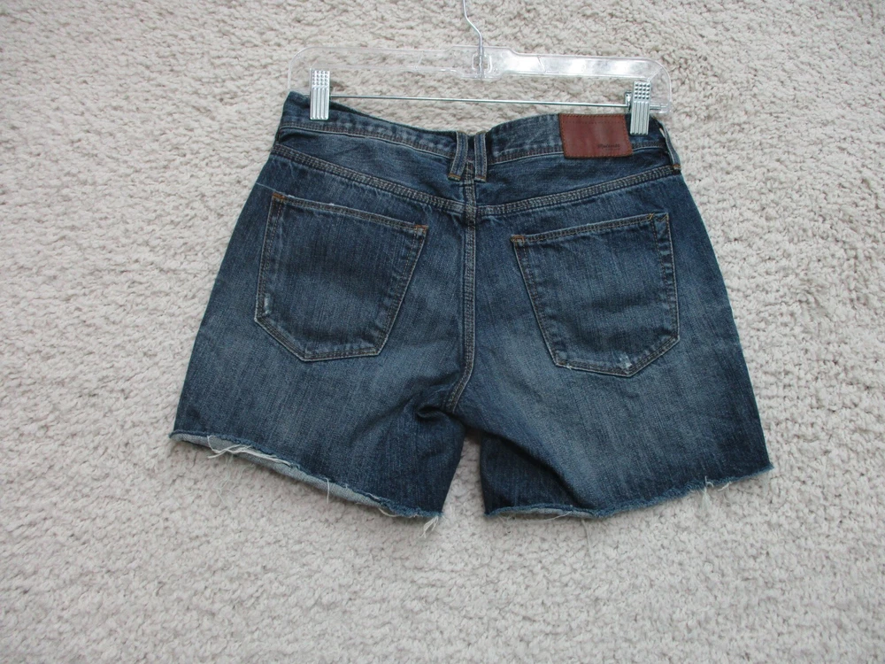 Accents: Button, Logo Fabric Wash: Dark Country/Region of Manufacture: China Fabric Type: Denim Size: 26 Brand: Madewell Theme: Classic, Modern, Outdoor Closure: Zip Inseam: 6 in Occasion: Casual Material: Cotton, Cotton Blend UPC: Does not apply Pocket Type: Slash Pocket Performance/Activity: Driving, Walking Season: Fall, Spring, Summer, Winter gtin13: Does not apply Features: Comfort, Easy Care, Pockets, Stretch Garment Care: Machine Washable Size Type: Regular Style: Cut-Off Color: Blue Seller Notes: “Very Good Used Condition. Please, See Pictures for Full Condition and Measurements.” Waist Size: 26 in Fit: Regular Pattern: Solid Rise: Mid (8.5-10.5 in) Department: Women Front Type: Flat Front