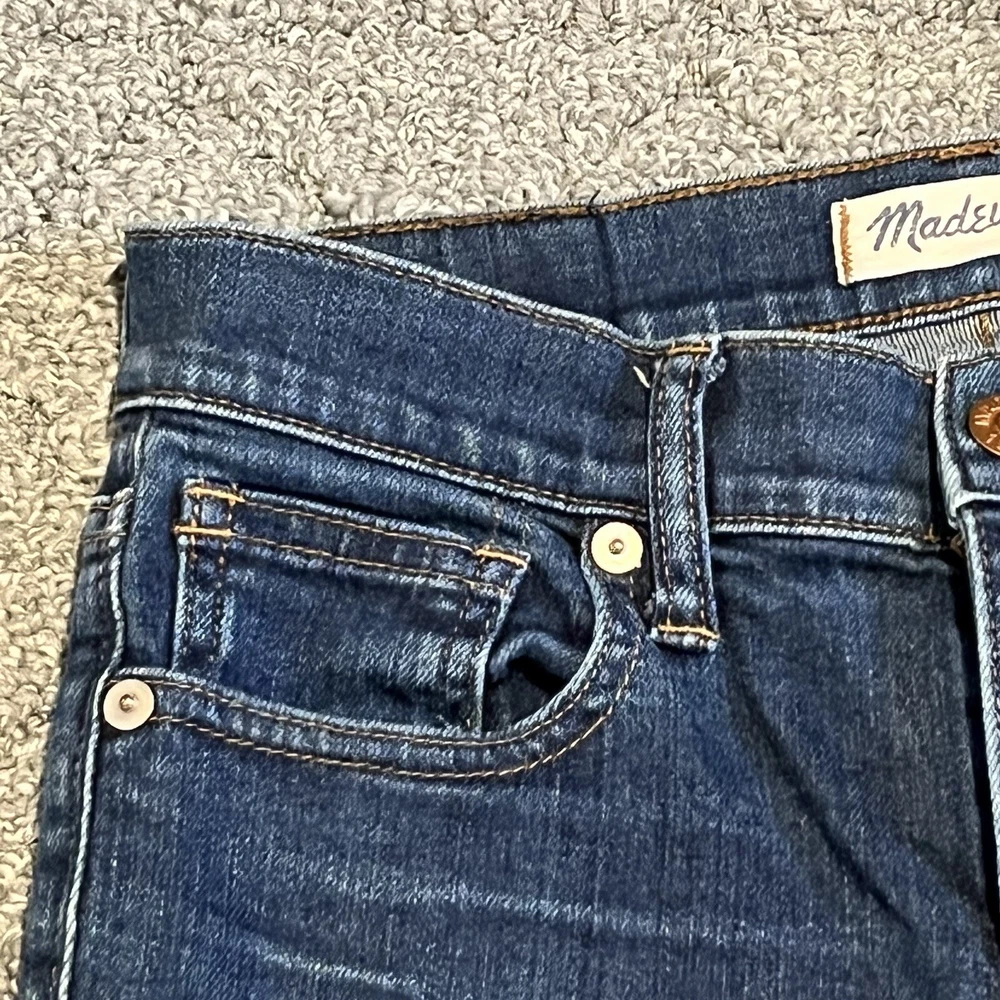These Madewell jeans fit like a dream! The high rise is super flattering, and the stretch keeps them comfortable all day. The perfect deep blue shade goes with everything, and the measurements were spot-on—no surprises. Loved the skinny cut, not too tight but still sleek. Definitely worth it!