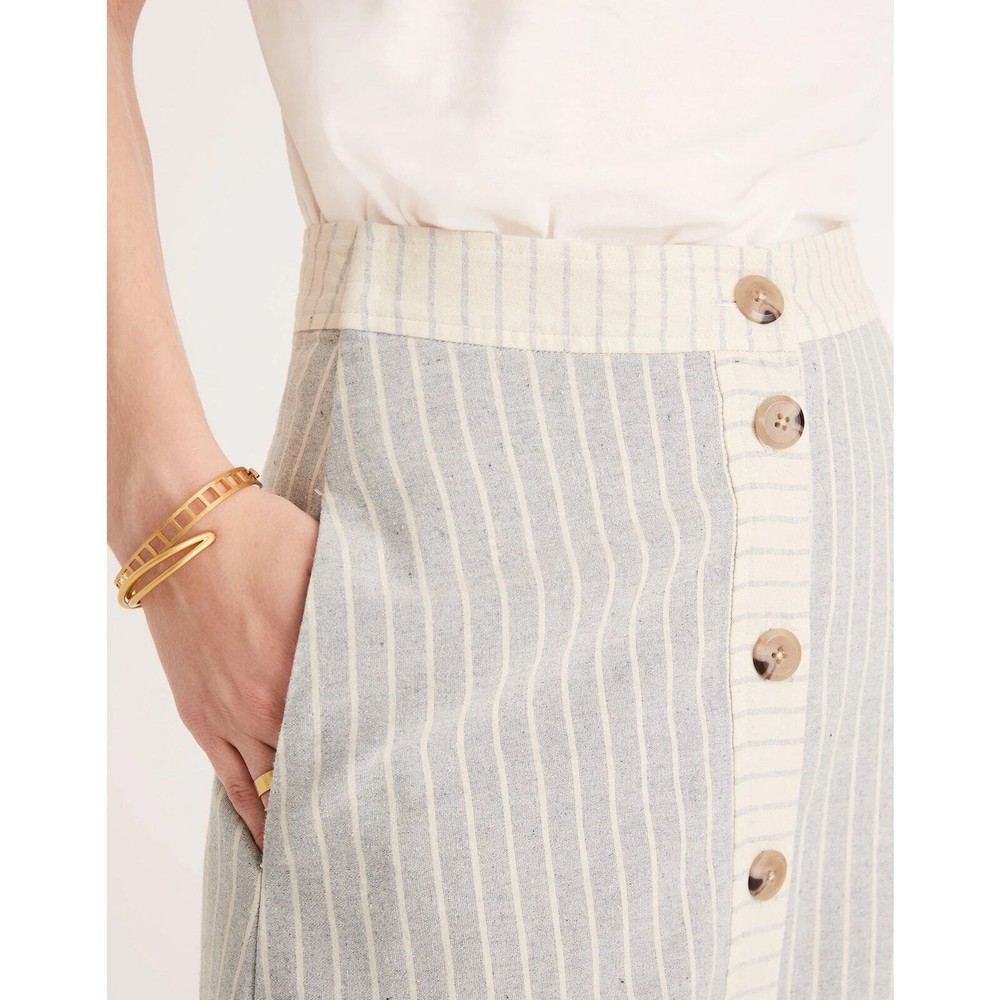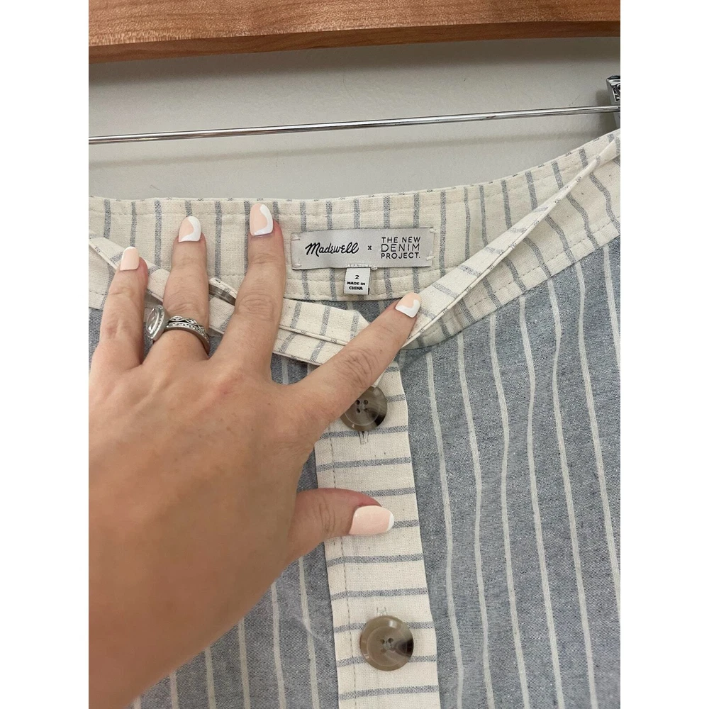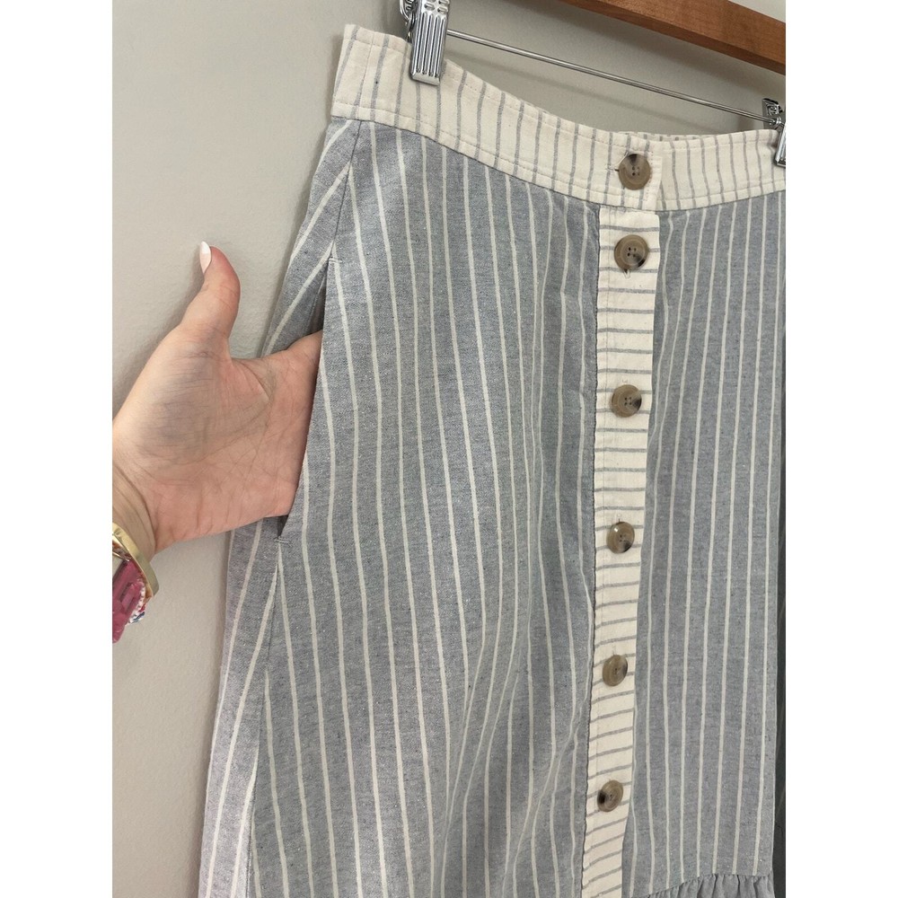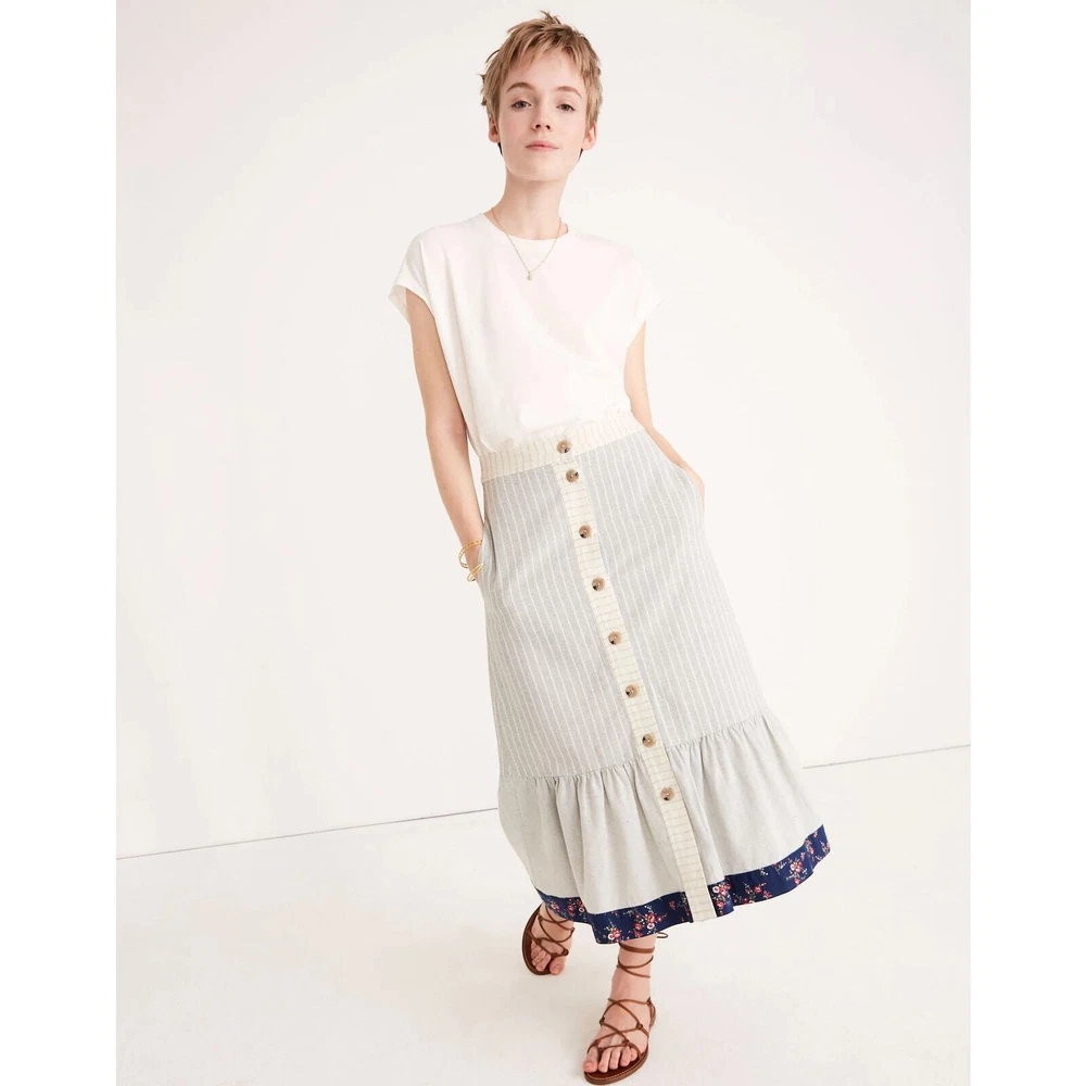 Madewell x The New Denim Project Boho 70's Ruffle Patchwork Button Midi Skirt Size 2. WLF 14.5 inches, length 31 inches. Based in Guatemala, The New Denim Project takes textile leftovers from mills and upcycles them into brand-new fabric (even their manufacturing waste gets turned into compost for local coffee beans). We teamed up on a feel-good capsule inspired by homespun '70s handwork—this button-front midi skirt mixes stripes with floral print and has a retro ruffled hem. 100% Cotton. Excellent used condition, no flaws noted. Please don't hesitate to ask any further questions. Smoke free pet friendly home. Check out my other listings for a bundle deal! Boho 70's Ruffle Prairie Patchwork