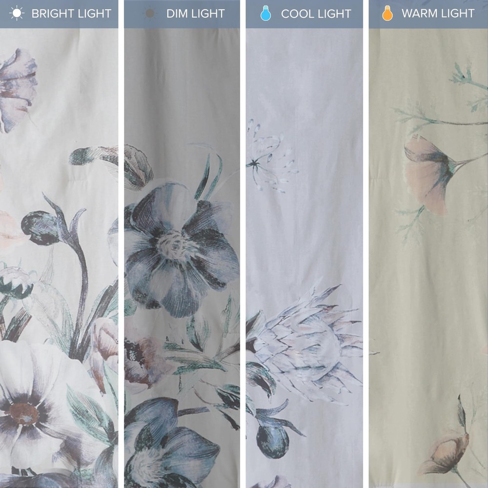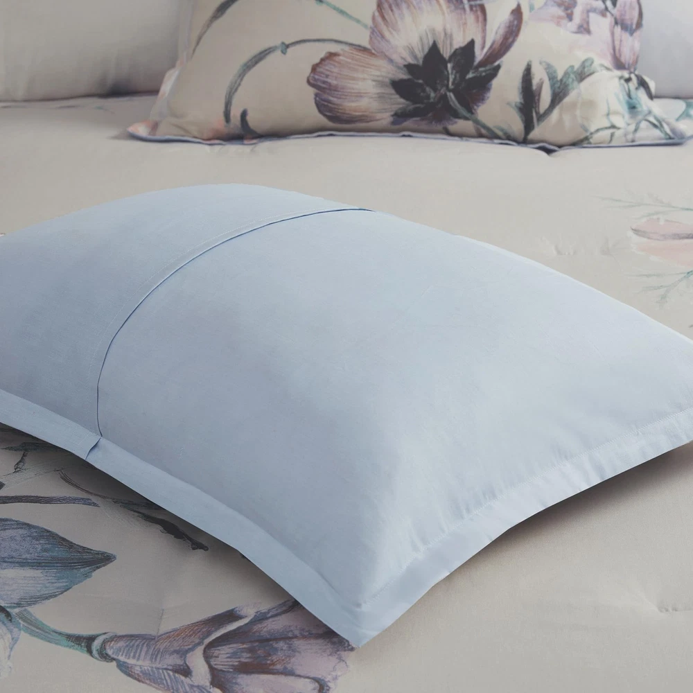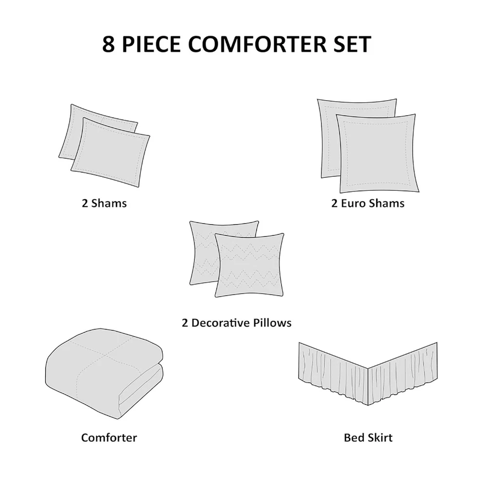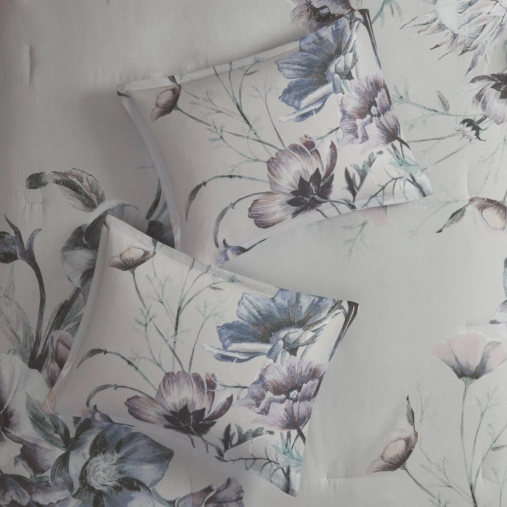 COMFORTER SET: The Cassandra 8 Piece Cotton Printed Comforter Set offers a beautiful shabby chic approach and romantic allure to your bedroom. Soft and breathable cotton cover with ample filling will give all season comfort DESIGN: The cotton face, cotton/polyester back comforter and shams feature a large floral print, in soft blue hues, creating a gorgeous look COMFORT: Soft & naturally breathable and lightweight cotton poly blend fabric comforter for a perfect all season bedding Set includes: 1 Comforter: 104"W x 92"L, 2 King Shams: 20"W x 36"L + 2"D, 1 Bedskirt: 78"W x 80"L + 15"D, 2 Euro Shams: 26"W x 26"L, 1 Decorative Pillow: 18"W x 18"L, 1 Decorative Pillow: 12"W x 18"L CARE: machine washable, spot clean pillow. For best result recommended to use commercial size washer and dryer