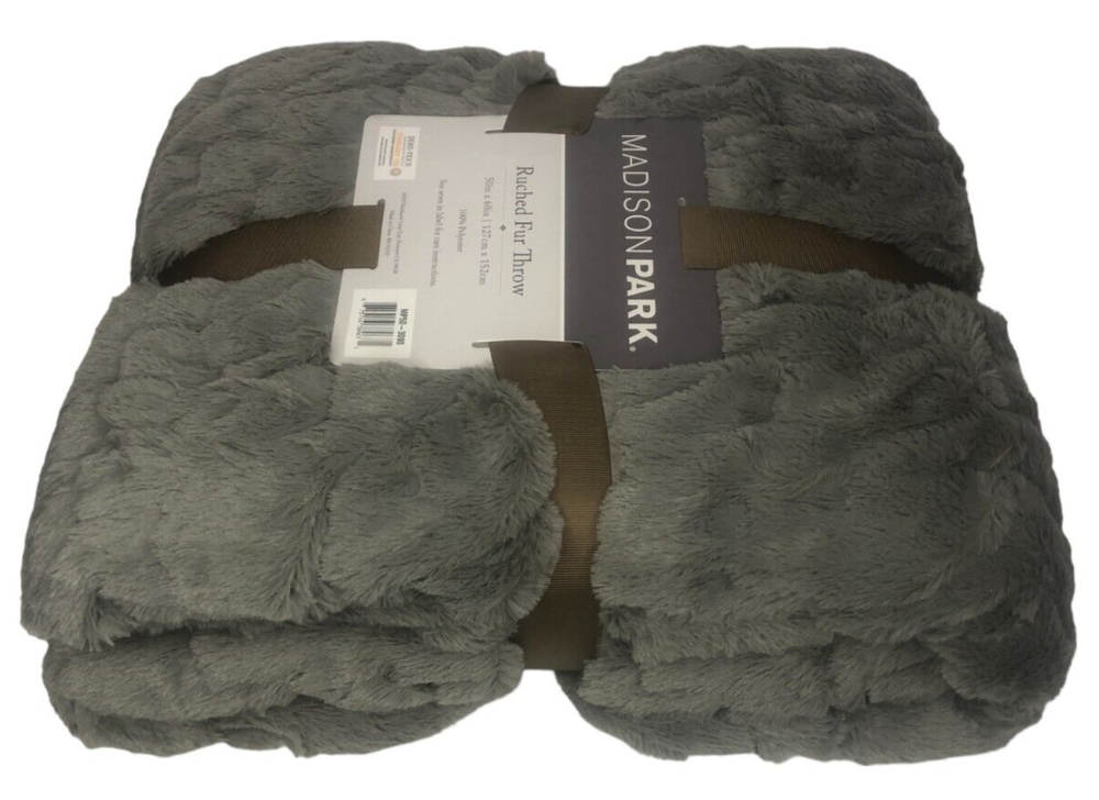 Madison Park GRAY Ultra Soft Ruched Faux Fur Throw Blanket New with Tags! FEATURES 50" x 60" Ruched design Ultra soft faux mink reverse Fluffy and luxurious Coordinating Madison Park ruched faux fur euro throw pillow sold separately CONSTRUCTION & CARE Polyester Machine wash Imported Actual item Photos. Don't hesitate to contact us before purchasing if you have questions about the item's condition and shipping cost. If you receive an item with a noticeable flaw not shown in the photos, please contact us before leaving feedback. We strive to describe all items thoroughly and accurately. Please ask any questions you have before offering or buying. We will do our best to return your messages within 24 hours. Happy Shopping!