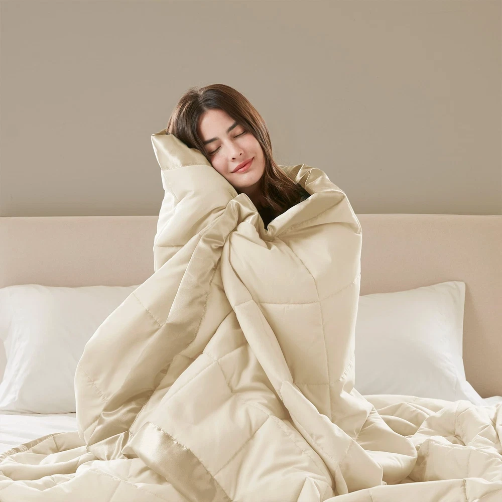 Madison Park Windom Down Alternative Blanket, Premium Twin, Satin Trim, Cream Description This soft and extra comfy blanket is made of polyester that's lightweight but warm. The satin trim adds a silky smooth luxury element that feels great on your skin. It features a 3M Scotchgard Moisture Management Treatment that wicks away moisture while helping release stains. Machine washable for easy care and perfect for all seasons. This blanket is also OEKO-TEX certified, meaning it does not contain any harmful substances or chemicals, ensuring quality comfort and wellness. Features: NEW & TRENDY - Search no further for your new cozy blanket, Windom microfiber blanket offers colors complimenting the luxurious double sided box quilting design accented with satin binding. Brushed microfiber fabric offers a super soft and lofty cover to keep you warm and cozy, while still giving a lightweight and wrinkle resistant design. BETTER SLEEP - We simply offer you a really soft and cozy high quality brushed microfiber blanket. It features a 3M Scotchgard Moisture Management Treatment that wicks away moisture, keeping you warm and dry through the night. The treatment also helps most stains come out in the wash. ALL SEASON - Our all season blanket offers a soft and lightweight material perfect Summer blanket and warm enough for Spring season. Madison Park Collection aims to offer you a better quality sleeping experience. In the winter our blanket can be the perfect layering piece, adding a decorative element of soft texture for extra warmth and coziness during the cold season MAKE IT LAST - It will last if you maintain it by using machine wash cold on gentle cyle only, and tumble dry on low heat. And NO BLEACH. Commercial size front loading washer is recommended INCLUDES - 1 Blanket: 90"x68" Product Details: Handling We will ship all orders within 1 business day of payment. Delivery We Do Not Ship Outside of the Continental US. Return Policy All items qualify for returns within 30 days of receipt. Buyer is responsible for return shipping on any item that is not damaged. Feedback We take our reputation seriously, we buy and sell online, so we understand the value of trust. If you are unsatisfied with your order, please contact us and we will work with you to resolve it to your satisfaction.
