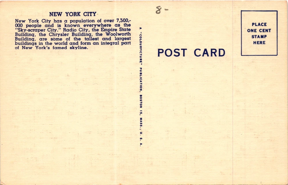 MAKE AN OFFER. THE MORE YOU BUY THE BETTER DEAL I WILL ACCEPT The postcard features an image of Madison Square Garden in New York City. New York City is highlighted as the Sky-scraper City with a population of over 7,500,000 people.