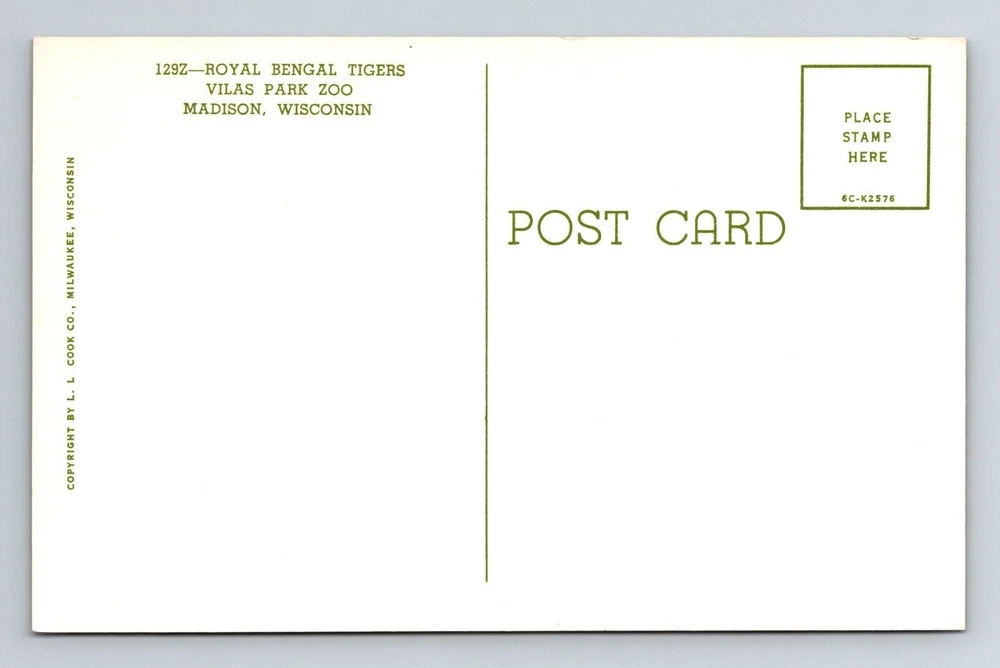 Madison WI-Wisconsin, Royal Bengal Tigers, Park Zoo, Vintage Postcard