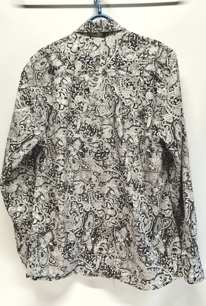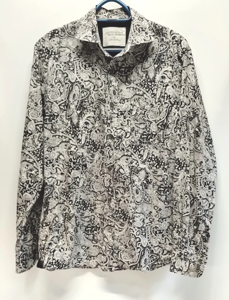 This Madison Washed Poplins button-up shirt is a versatile addition to any wardrobe. The paisley pattern and black color make it suitable for a variety of occasions, from casual wear to weddings and parties. The long sleeves and button closure provide a classic look, while the cotton material ensures comfort and ease of care with machine washability. The shirt is part of the Madison product line and fits true to size for regular men's sizing. Whether you're dressing up for a special event or just looking for a comfortable and stylish option for everyday wear, this shirt is a great choice.