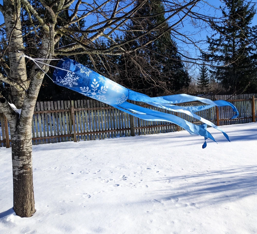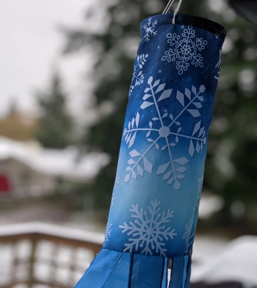 Madrona Brands Winter Snowflake Windsock will bring a smile to your face with it’s cheerful and fun design. Great for those that want to decorate their outdoor spaces during the winter with an eye-catching design. ❄This windsock is 60 inches long and made of high-quality polyester fabric and sewn tail edges that are weather resistant for longer lasting enjoyment all winter long. The design portrays falling snowflakes on an icy blue background with 6 blue ombre colored tails to catch the breeze. ❄Hang anytime of year on patios, decks, porches and more. It makes a great gift or welcome seasonal decor around an entryway. ❄Ready to hang upon arrival with no assembly required. Includes a metal, swivel hanging clip that allows it to spin freely and collapses down to easily store away flat when needed. ❄Enjoy watching nature in motion from a warm inside as these snowflakes dance and spin in the cold breeze, brrrr.