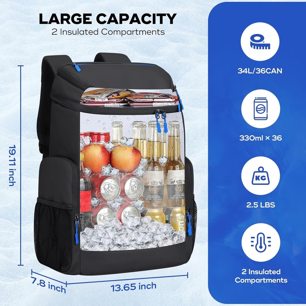 Maelstrom Backpack Cooler,36 Can Cooler Backpack,Soft Bag 1.Black Description Our waterproof and insulated cooler backpack is your go-to companion for outdoor escapades. Whether it’s a day at the beach, a camping trip, or a rugged hike, keep your refreshments cold and your gear dry with our durable and versatile backpack. Features: Leakproof and Insulated: Our Maelstrom backpack cooler utilizes advanced seamless hot pressing technology to ensure leak-proof performance. The insulated material effectively preserves the freshness of your food and drinks, keeping them cold for up to 16 hours. Spacious and Organized: The Maelstrom insulated cooler backpack offers ample storage with multiple compartments, measuring 13.65” x 7.8” x 19.11” (LxWxH) and accommodating 36 cans (34 L). Featuring double insulated compartments, a top zipper pocket, front cutlery storage bag, side pockets, and a hidden back zipper pocket, it ensures convenient and organized storage for all your essentials. Innovative Functional Design: Our soft cooler bag is equipped with a detachable bottle opener, providing convenient access to your drinks at any time and place. Additionally, the front side of the lunch cooler backpack features five webbing holes for hanging keys, camping lights, and other tools, while the shoulder strap includes a stretch cord for securing your sunglasses. Comfortable and Durable: Our lunch backpack is designed for comfort and endurance, featuring a padded back, and adjustable breathable shoulder straps. The adjustable chest buckle of travel cooler ensures stability and weight distribution, while also serving as a survival whistle for emergencies. Perfect for Outdoor Adventures: Our ice chest backpack is designed to keep your food and drinks cold while you enjoy outdoor activities such as hiking, picnics, camping, and beach outings. With its insulated compartments and comfortable design, it’s the ideal companion for all your outdoor escapades, ensuring you stay refreshed and hydrated throughout your adventures. Product Details: Brand: Maelstrom Color: 1.Black Material: Polyester, Polyethylene Vinyl Acetate (PEVA) Package Information: Bag Capacity: 34 Liters Item Weight: 1.14 Kilograms Special Feature: Insulated Included Components: bag,bottle opener Model Name: MSCBP04 Manufacturer: Maelstrom Package Dimensions: 13.89 x 11.97 x 6.06 inches Item Weight: 2.51 pounds Item model number: MSCBP04 Handling We will ship all orders within 1 business day of payment. Delivery We Do Not Ship Outside of the Continental US. Return Policy All items qualify for returns within 30 days of receipt. Buyer is responsible for return shipping on any item that is not damaged. Feedback We take our reputation seriously, we buy and sell online, so we understand the value of trust. If you are unsatisfied with your order, please contact us and we will work with you to resolve it to your satisfaction.