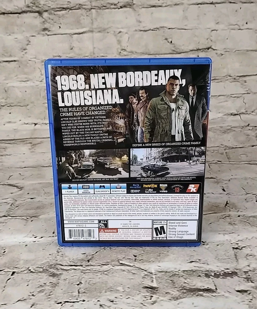 Genre: Action & Adventure Game Name: Mafia III Publisher: 2K Games Rating: M - Mature Video Game Series: Mafia Platform: Sony PlayStation 4 Features: Complete Edition Country/Region of Manufacture: United States Release Year: 2016