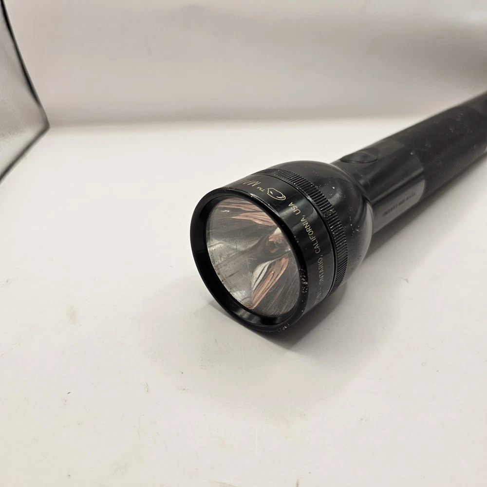 Mag-Lite 12 Inch 3 D Cell Black Metal Flashlight Heavy Duty - Tested The flashlight has a lot of wear. Scratches and paint chips throughout. The light is tested and working. SEE PHOTOS