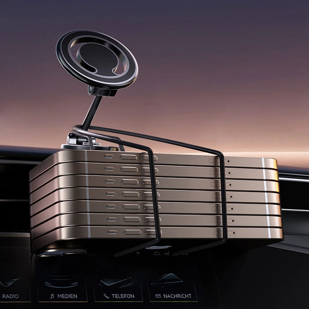 This magnetic car phone holder is a game-changer! The strong MagSafe grip keeps my iPhone secure, and the adjustable angle makes navigation effortless. It’s compact, doesn’t block my view, and holds my phone steady even on bumpy roads. Super easy to install and switch between portrait and landscape mode. Perfect for my daily commute—highly recommend!