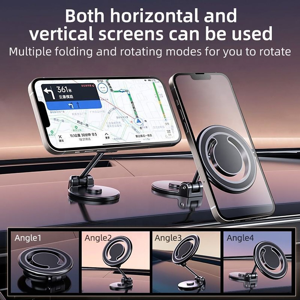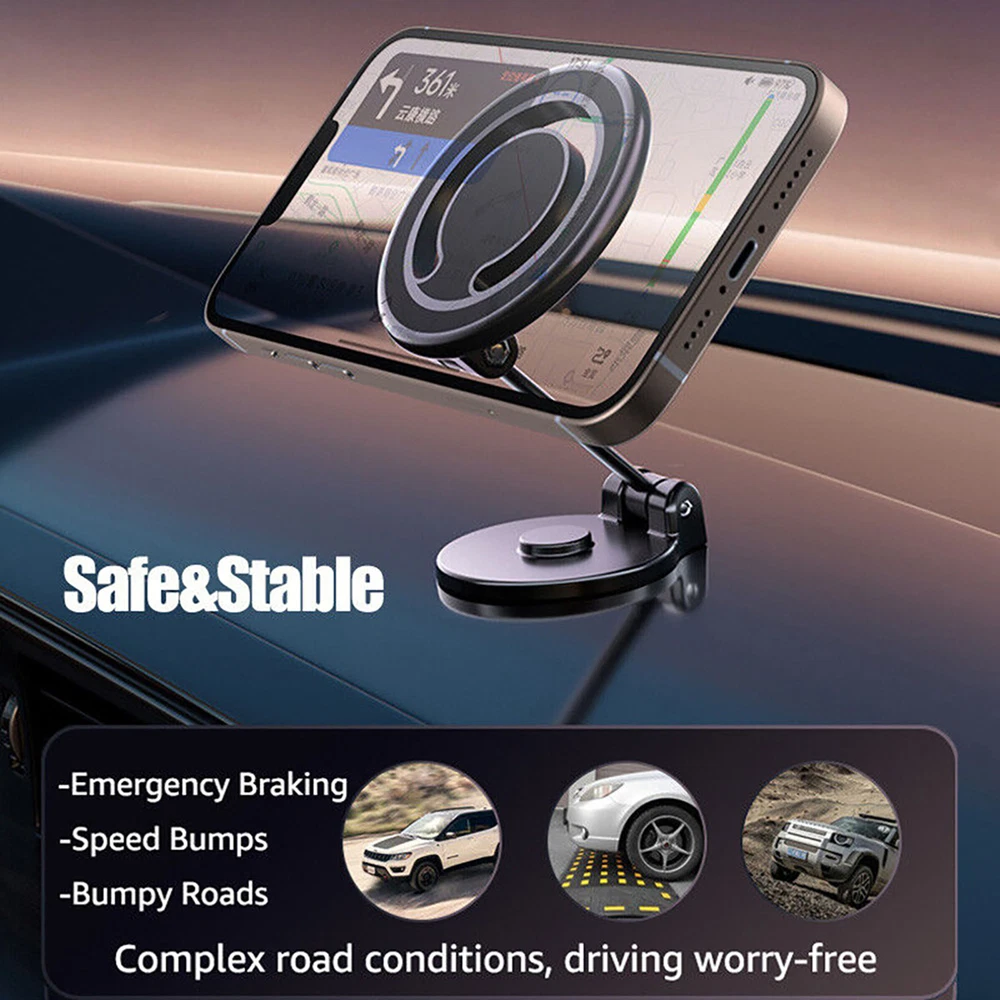This magnetic car phone holder is a game-changer! Its compact, foldable design keeps my view clear while driving, and the strong MagSafe grip holds my iPhone securely. I love how easily it adjusts to any angle—perfect for navigation in both portrait and landscape mode. The mount stays firm even on bumpy roads, and the minimalist look blends seamlessly with my car’s interior. Super convenient and reliable!