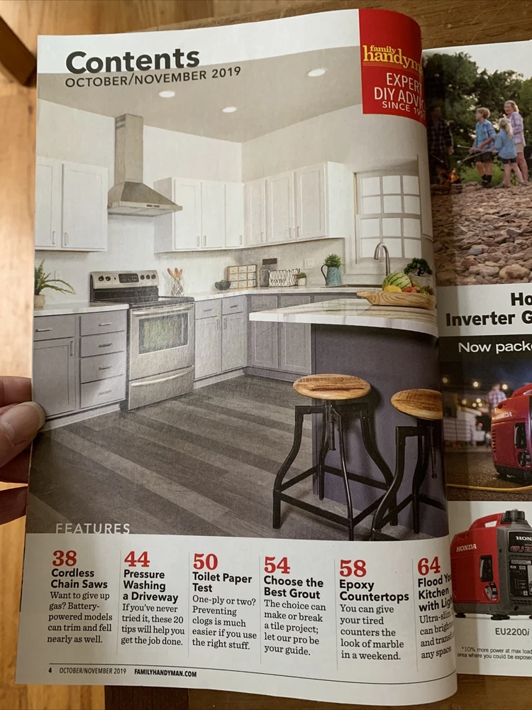 MAGAZINE TITLE : Family Handyman Instant impact kitchen upgrades Peel & stick backsplash Why a smart faucet? Pour on epoxy looks like marble Snap-together luxury vinyl floor Plus: the easy way to flood your kitchen with light! FORMAT : Magazine PUBLICATION DATE : Octo/Nov 2019 CONDITION : Brand New - never read. Been sitting on a shelf. No creases (see pics) PAYMENT : Payment is due within 3 days of the end of the auction. SHIPPING : Shipping is via US Post Office ONLY. RETURN POLICY : I list items to the best of my ability and try to describe each item as best as possible. Items that were grossly missrepresented may be returned for a refund of bid price only (I will not refund any postage). Refunds will be issued once I receive the item back. Please check out my other items - I will gladly combine shipping! Email me if you have any questions.