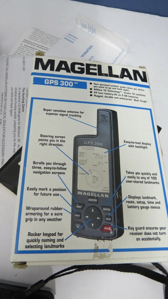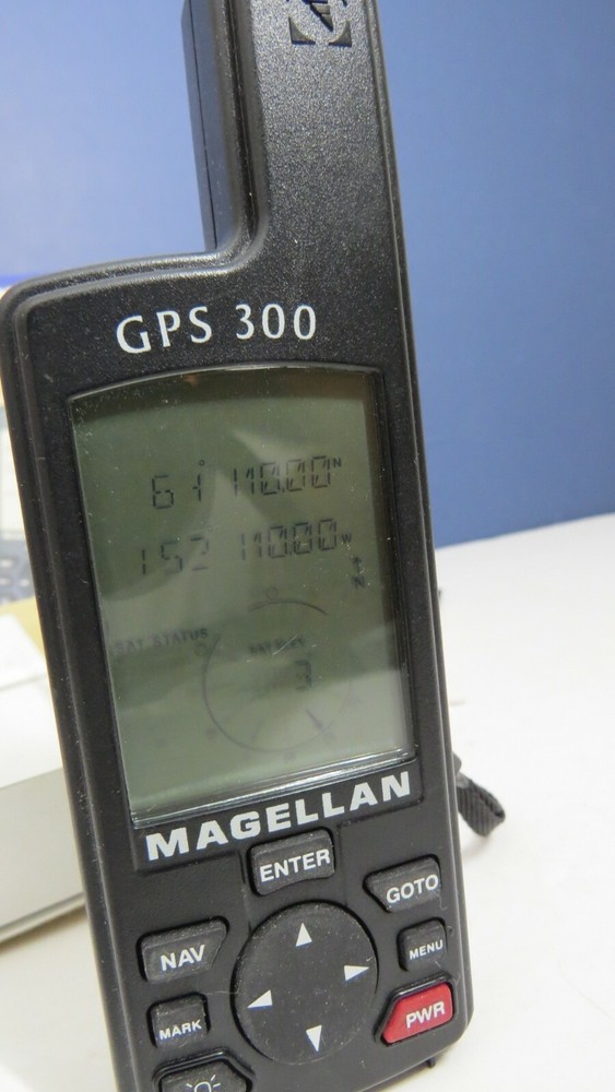 Magellan GPS 300 Satellite Navigator - Includes Original Box Parts LCD faded Condition: pre-owned, works but some of the numbers/lcd is faded-light