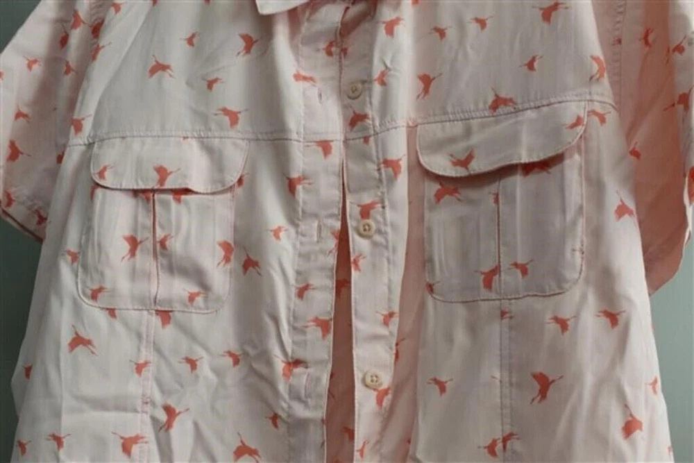 Get ready for your next outdoor adventure with this Magellan Outdoors Fish Gear button-up shirt. Designed for men, this shirt comes in a vibrant pink color with a bird theme, making it the perfect addition to your casual button-down shirt collection. The shirt is made from high-quality materials and features short sleeves, a button closure, and is available in size 2XL. Whether you're hiking, fishing, or bird watching, this shirt is sure to keep you comfortable and stylish. It's a great choice for those who love to explore the great outdoors. Don't miss out on this opportunity to add a stylish touch to your wardrobe.