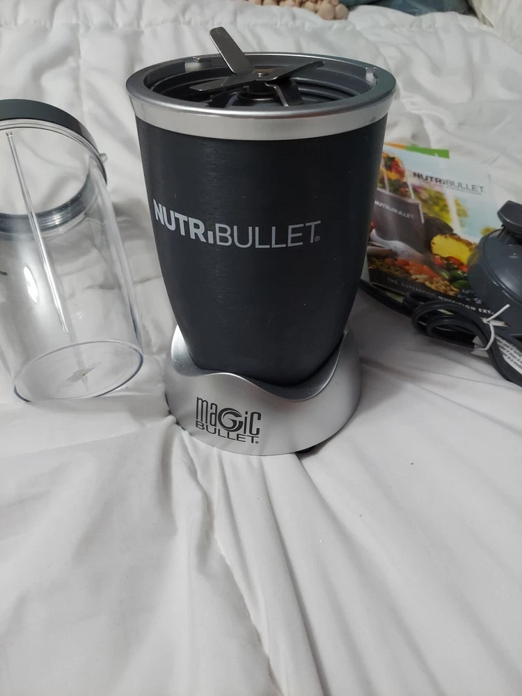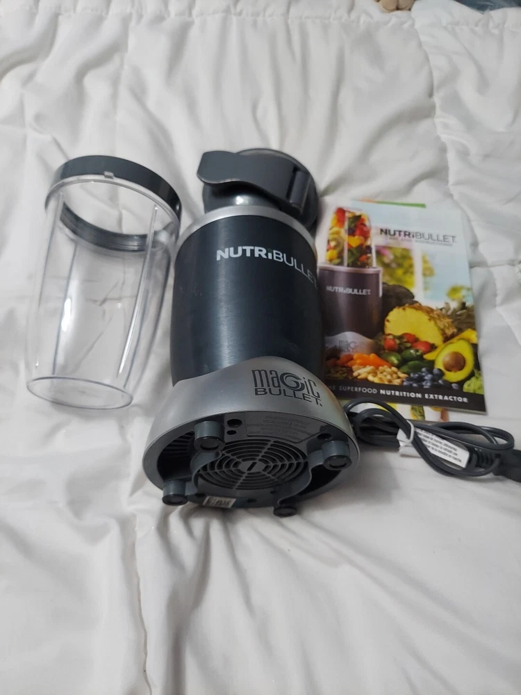 This Magic Bullet/nutribullet blender is a versatile and powerful tool for any kitchen. With a 24 oz capacity and 600 W power, it can handle all your blending needs with ease. The bullet blender comes in a sleek gray color and is made of durable plastic material. The blender includes a blender component and operates on a single speed. It is perfect for those who want a simple and efficient blending solution. Whether you're making smoothies, purees, or even grinding coffee, this Magic Bullet blender is the perfect choice.