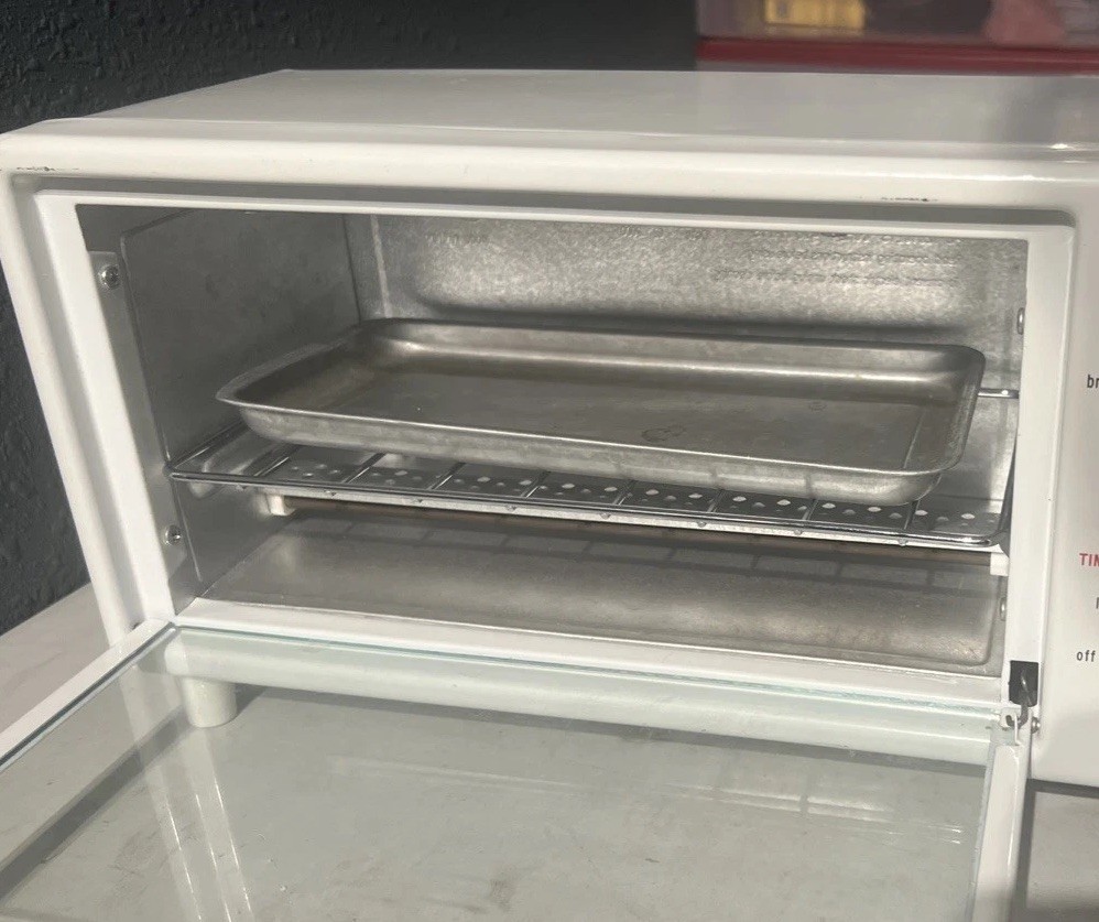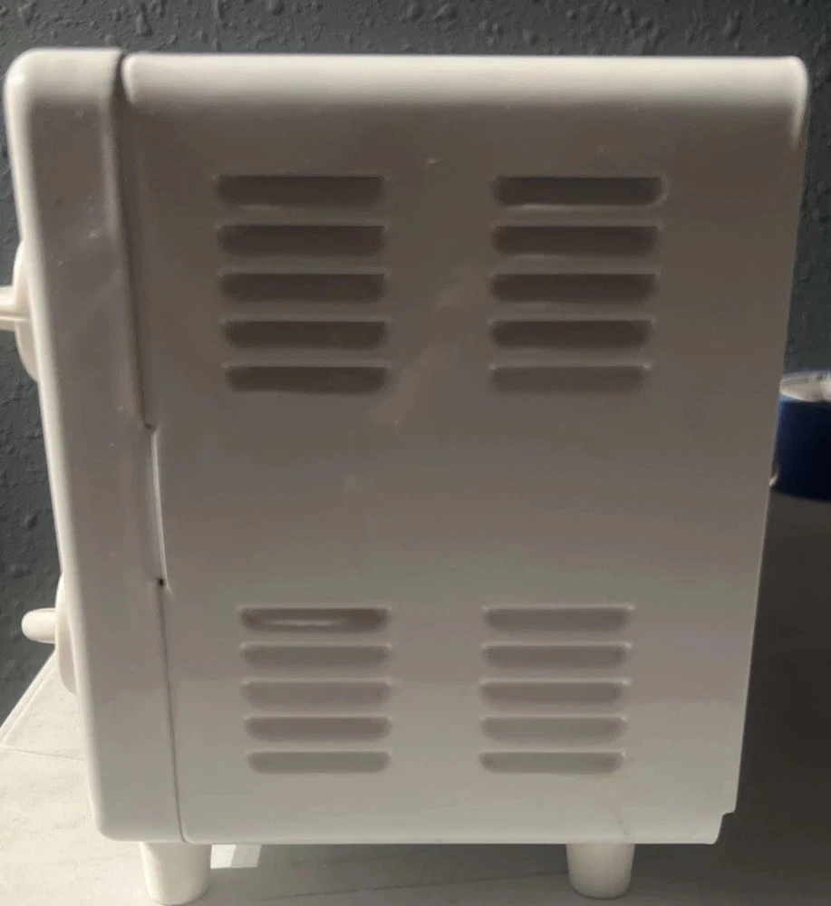 Works great and very clean. Looks like it was only used once or twice. Ships fast! The Magic Chef Mini Toaster Oven & Broiler Model 678 in White is a compact and versatile kitchen appliance. With a power source of 120V, it is easy to use and efficient for baking and broiling small items such as frozen snacks, pizza, or even a simple roast chicken. Made of metal and designed with a sleek white color, this toaster oven adds a touch of style to any kitchen. The included rack and tray make it convenient for baking and broiling your favorite foods with ease. Perfect for small spaces or for those looking for a secondary oven for added convenience.