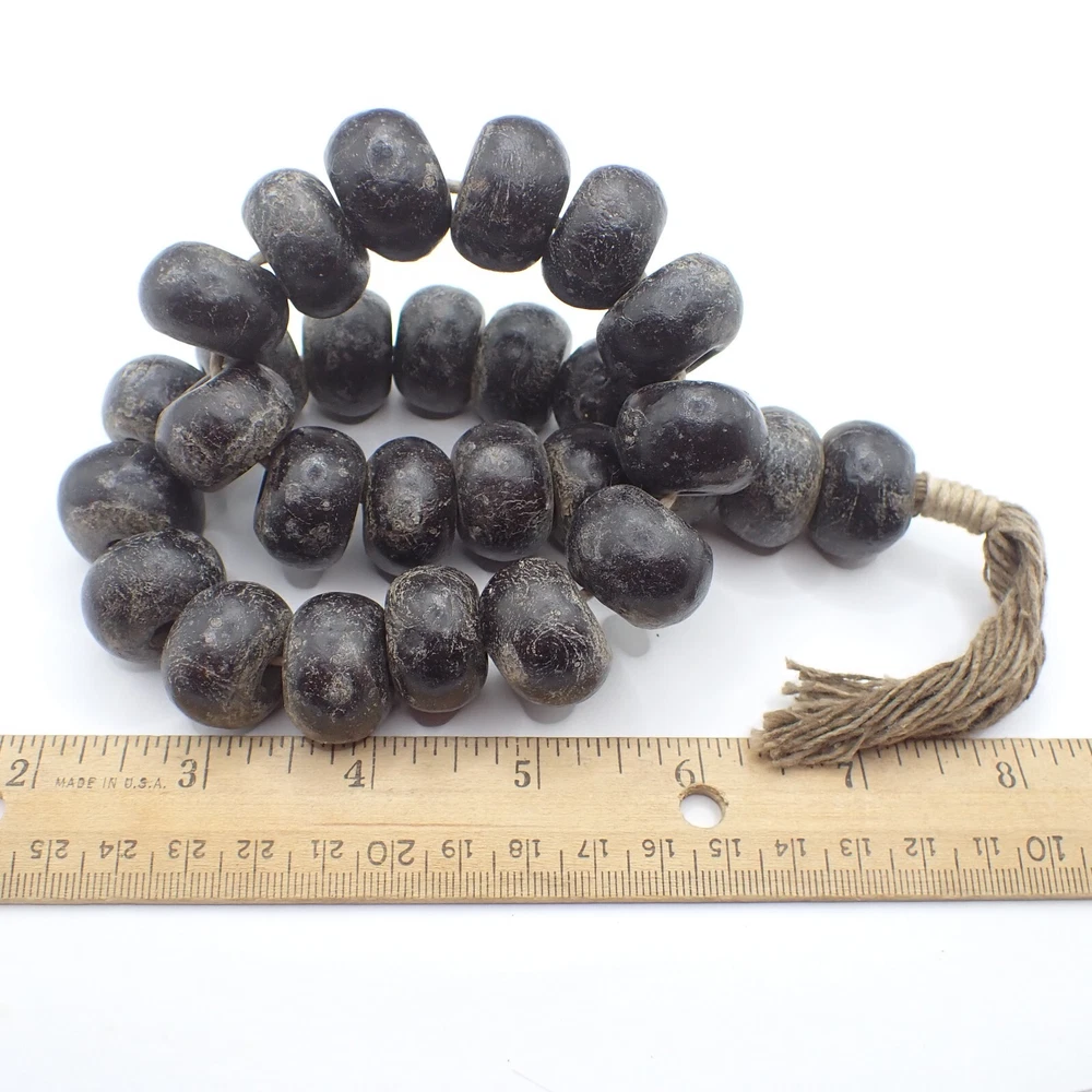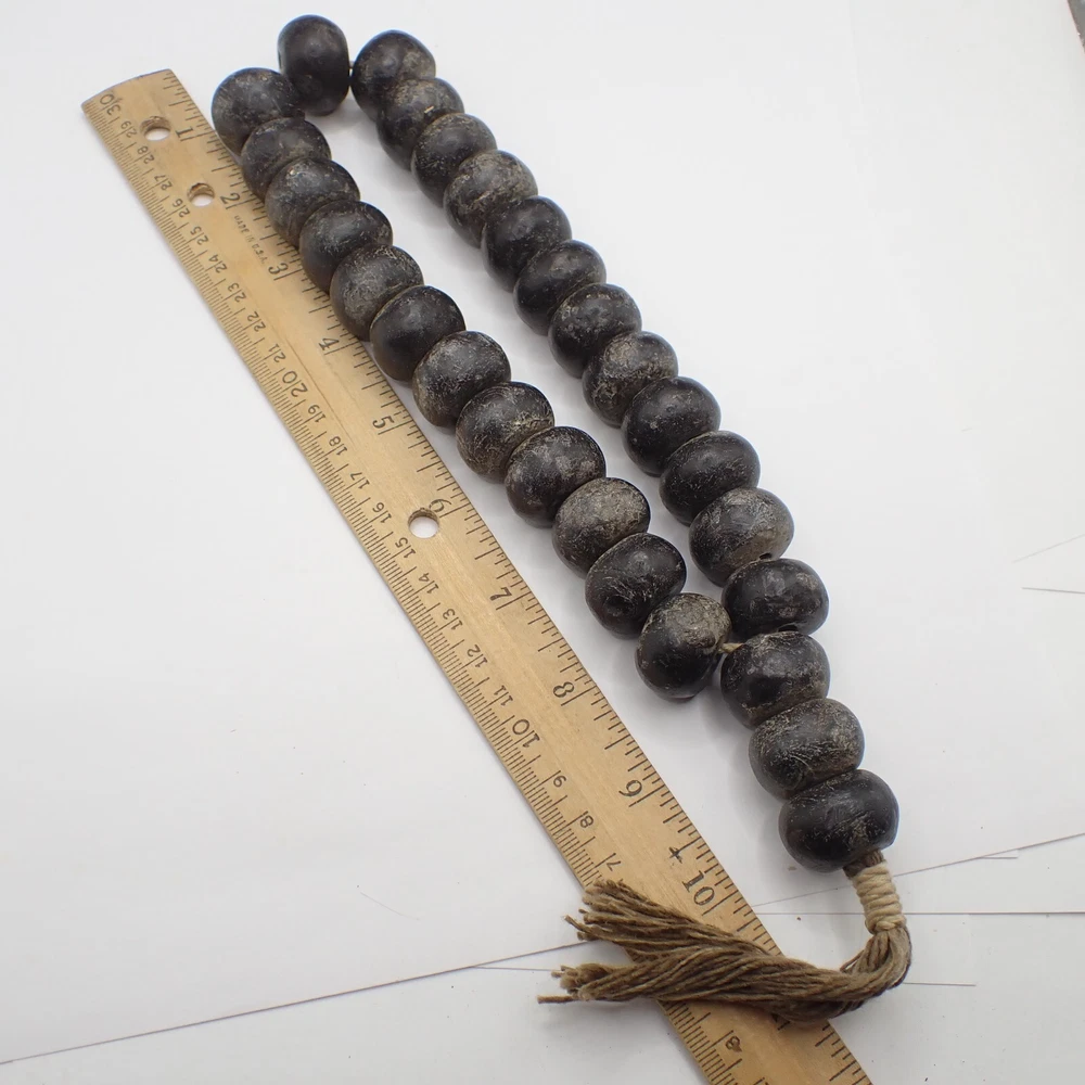 origin: Thailand # of pieces: 28 material: wood length: around 18 inches size: the beads are all around 14 x 23 This is a very unique and lovely buddhist prayer Mala. These types of items are traditionally made by monks in Thailand in order to support the monastery and as talisman's for their adherents. Don't miss your chance at this lovely and unique Buddhist decor prayer Mala! Customer satisfaction is our number one priority. Please fell free to contact us with any questions. We are always happy to help!