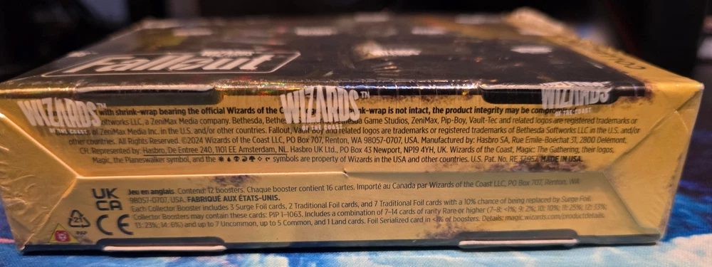 War... War never changes... This rare Magic the Gathering collector boosters box is for the Universes Beyond: Fallout set and is full of all the iconic imagery and quirky characters you've come to know and love. The set has beautiful illustrations featuring retro futurist designs as well as apocalyptic landscapes and is sure to delight any Fallout or Magic the Gathering fan. This box contains 12 collector booster packs filled with beautiful holofoils just waiting to be added to your collection, you never know what you might pull! These booster boxes were purchased by the seller from a card shop brand new while they were still being sold at retail and have been kept sealed and stored well since then.