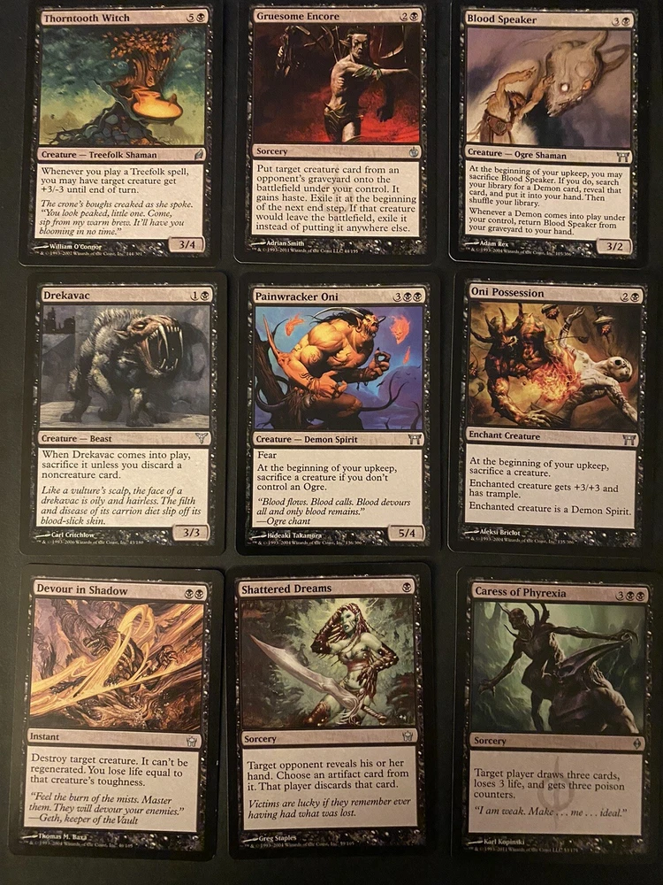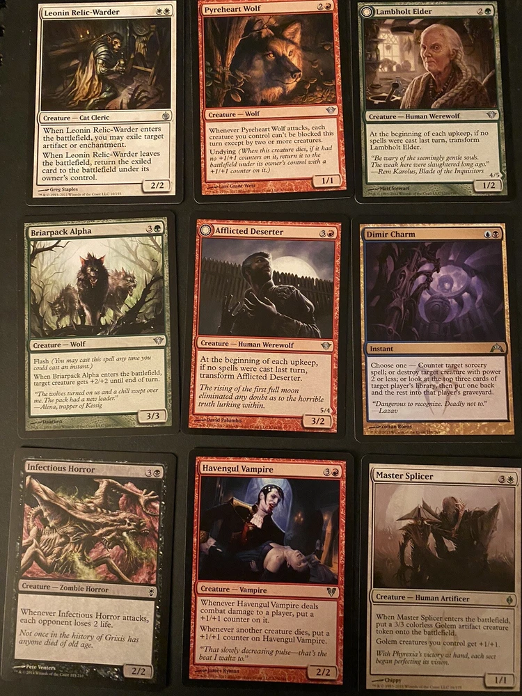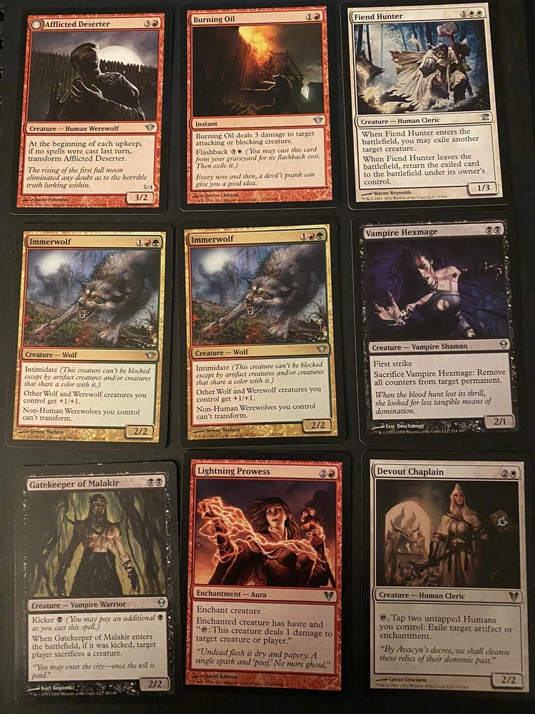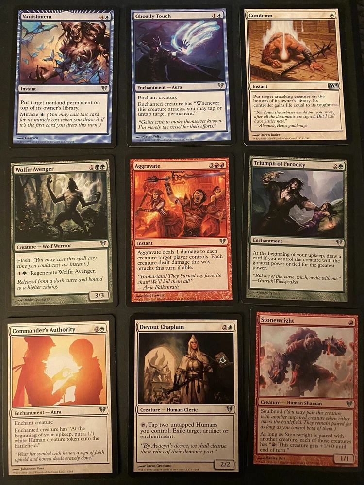 Number of Cards:207Game:Magic: The GatheringCard Type:Creature, Artifact Creature, Artifact, Instant, SorceryManufacturer:Wizards of the CoastSet:Rise of the Eldrazi, Champions of Kamigawa, Innistrad, Revised EditionAttribute/MTG:Color:Blue, Green, Black, White, RedLanguage:English