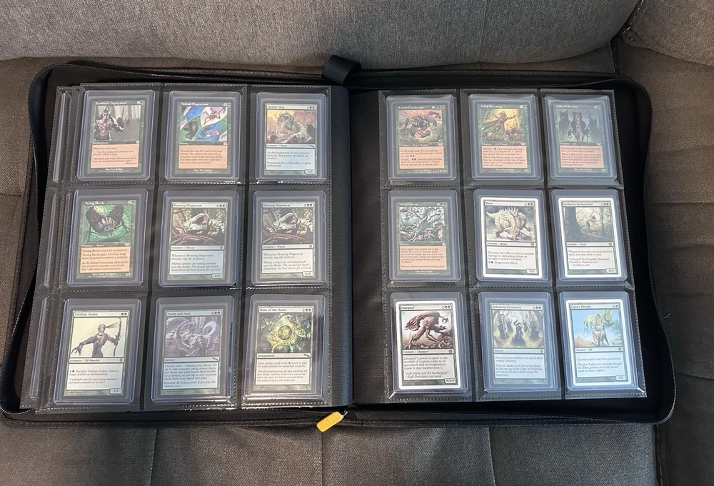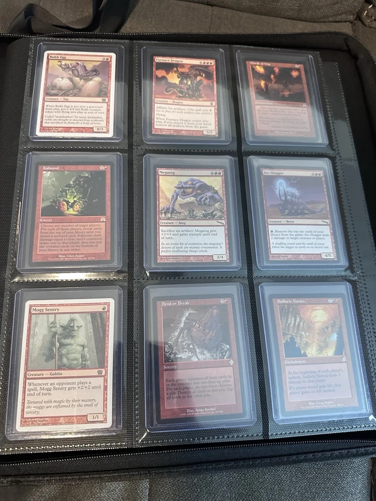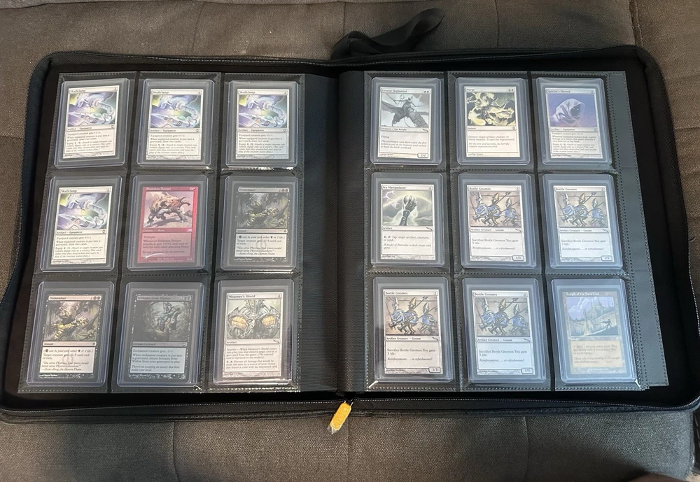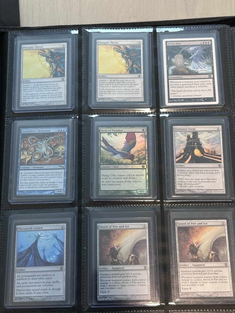 UP FOR AUCTION TOPLOADER BINDER LOT OF 288 RARES 54 UNCOMMON AND 9 COMMON 95% OF THESE CARDS HAVE NEVER BEEN PLAYED WENT STRAIGHT TO BINDER AND THEN LATER TO SLEEVES AND TOPLOADERS IN TOPLOADER BINDER WHILE THERE ARE A FEW NEWER CARDS MOST OF THE CARDS ARE FROM SETS BETWEEN 2000-2004 THIS WILL BE A NO RESERVE AUCTION THE BIRDS OF PREY IS A FOIL THIS PACKAGE WILL BE WELL PACKAGED AND WILL SHIP WITH PRIORITY MAIL WITH SIGNATURE CONFORMATION