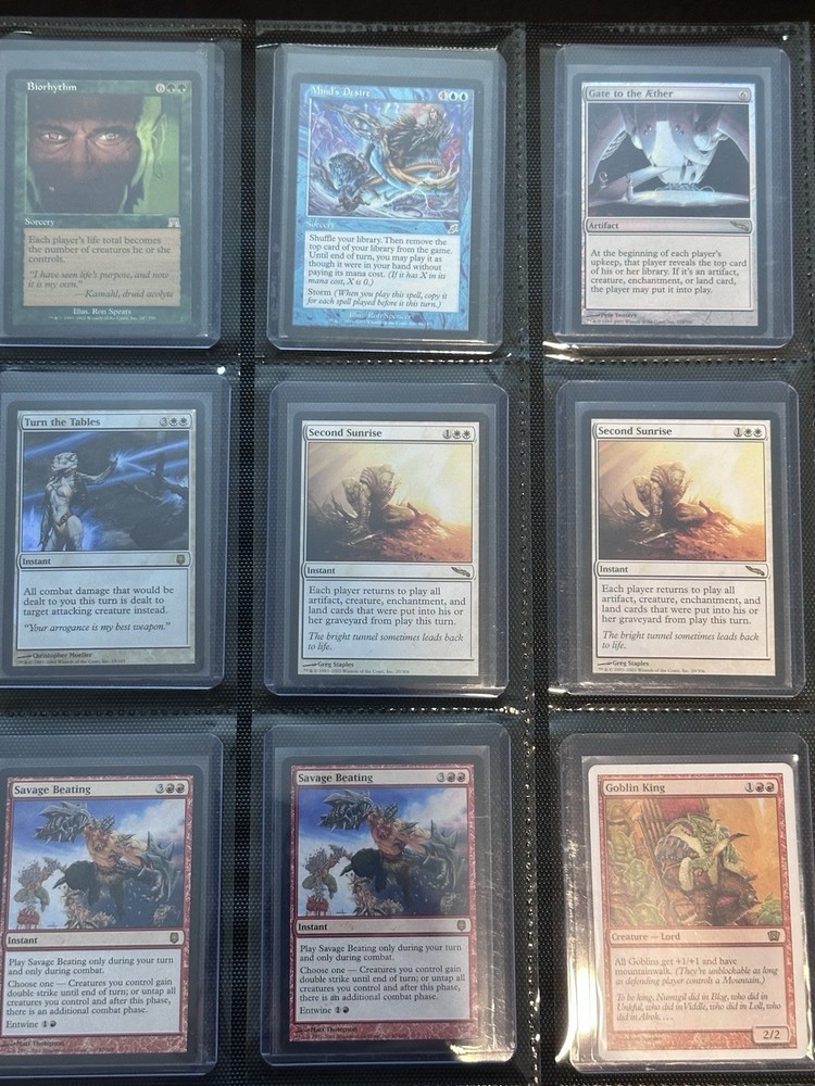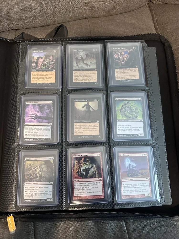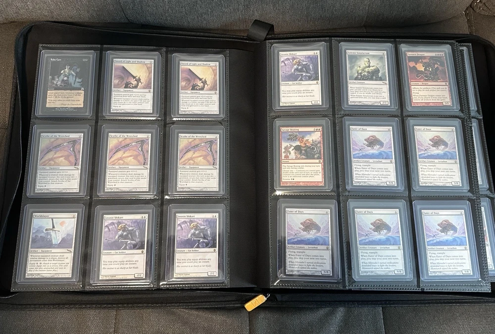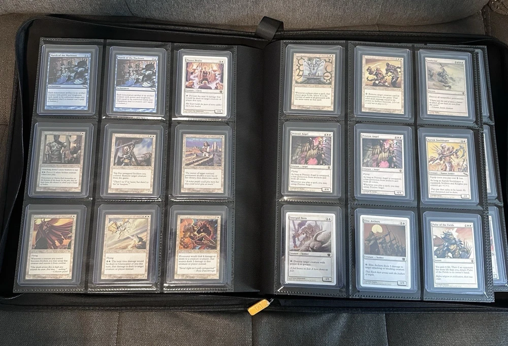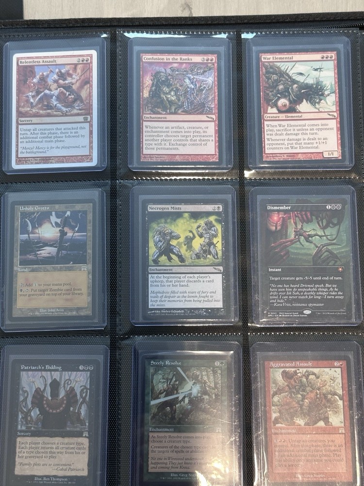 UP FOR AUCTION TOPLOADER BINDER LOT OF 288 RARES 54 UNCOMMON AND 9 COMMON 95% OF THESE CARDS HAVE NEVER BEEN PLAYED WENT STRAIGHT TO BINDER AND THEN LATER TO SLEEVES AND TOPLOADERS IN TOPLOADER BINDER WHILE THERE ARE A FEW NEWER CARDS MOST OF THE CARDS ARE FROM SETS BETWEEN 2000-2004 THIS WILL BE A NO RESERVE AUCTION THE BIRDS OF PREY IS A FOIL THIS PACKAGE WILL BE WELL PACKAGED AND WILL SHIP WITH PRIORITY MAIL WITH SIGNATURE CONFORMATION