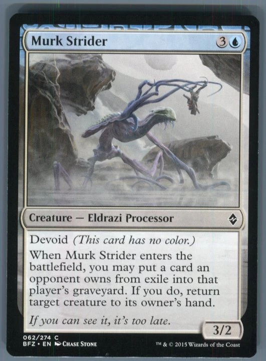 Card Number: 62 Set: Battle for Zendikar Features: Common Game: MAGIC_THE_GATHERING Graded: No Card Name: Murk Strider Rarity: Common Type: Collectible Card Game Character: Murk Strider