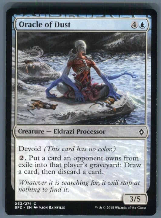 Rarity: Common Card Number: 63 Graded: No Features: Common Game: MAGIC_THE_GATHERING Type: Collectible Card Game Set: Battle for Zendikar Character: Oracle of Dust Card Name: Oracle of Dust
