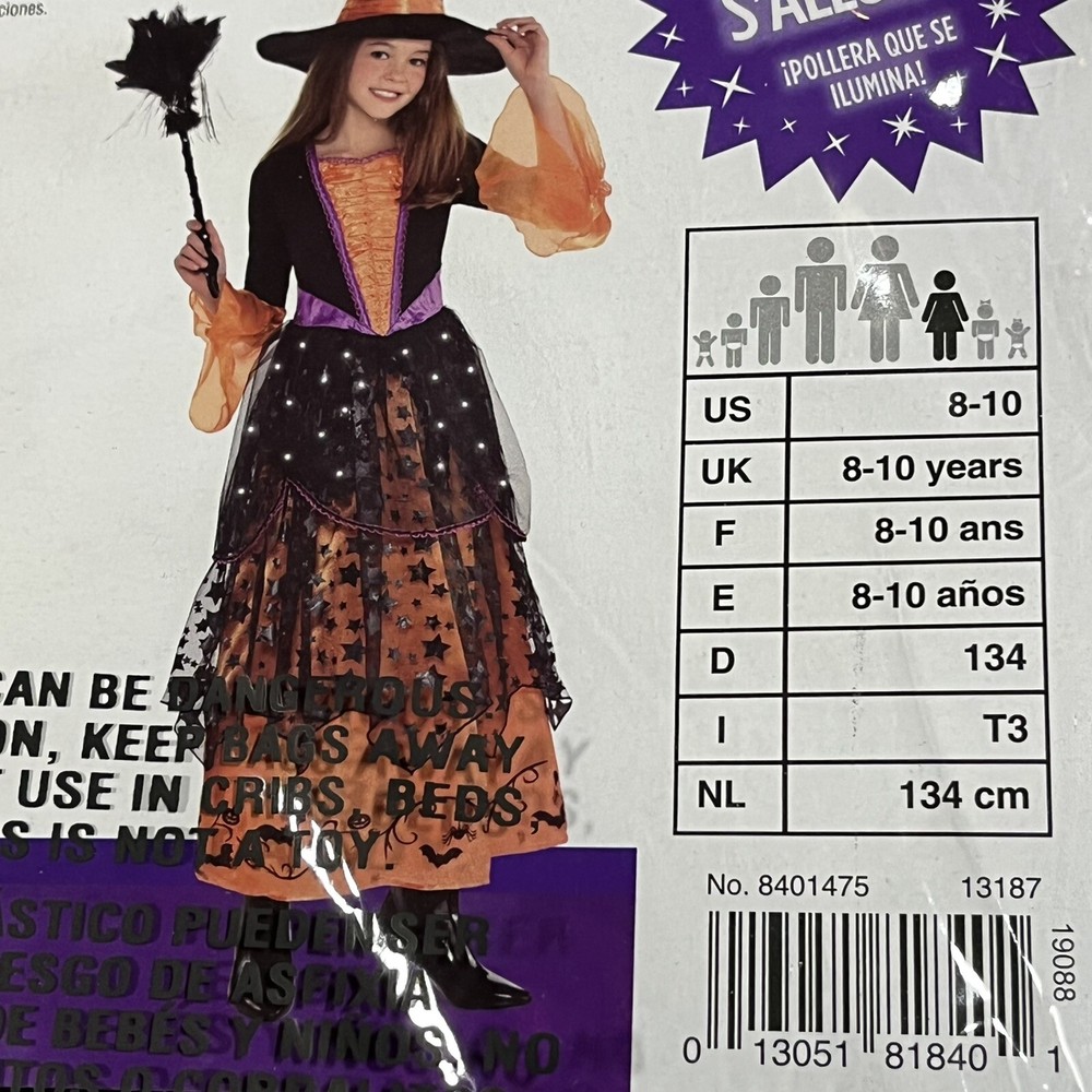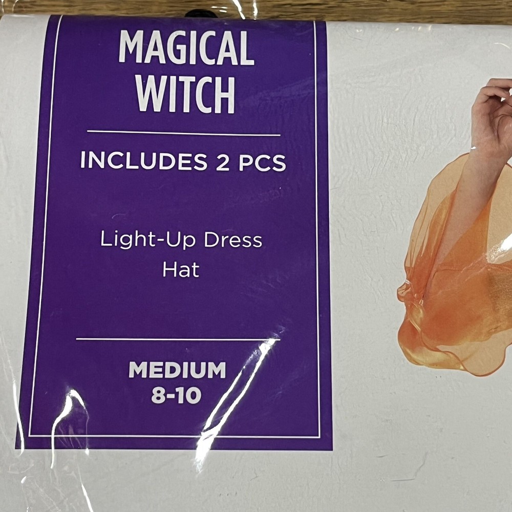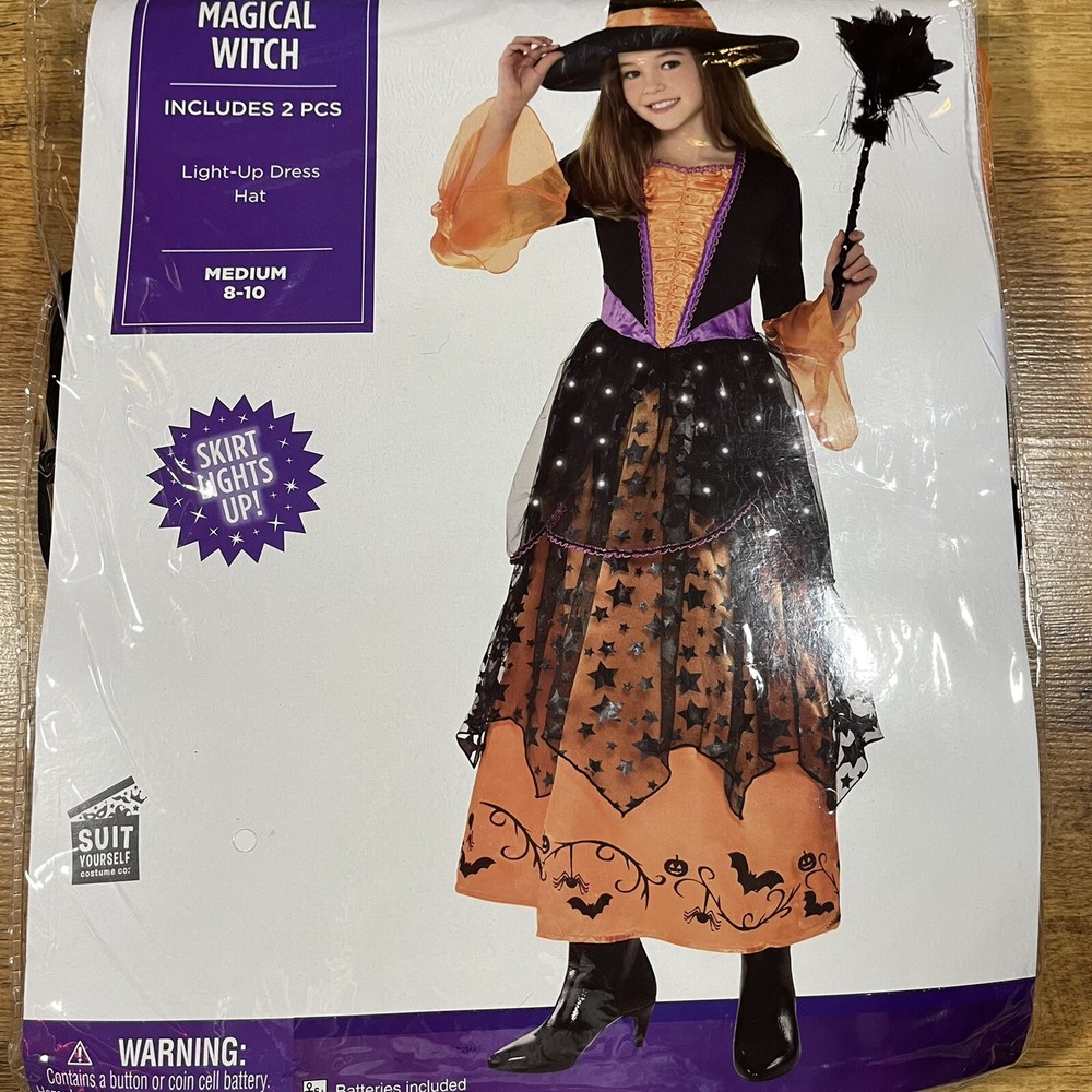 Magical Witch Costume Halloween Fancy Dress Up Lights Girl’s Size M 8-10 Years