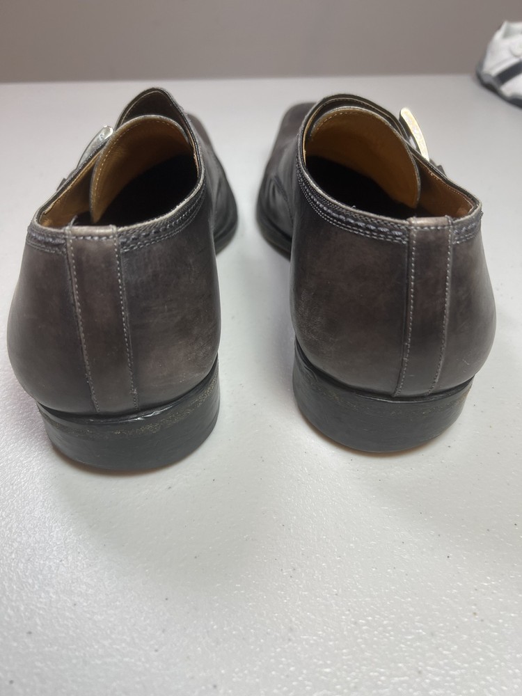 Step out in sophisticated style with these Magnanni Marco single monk strap dress shoes in a refined gray leather. Crafted in Spain, these pre-owned shoes showcase the exquisite artistry and attention to detail that Magnanni is renowned for. The single monk strap design offers a sleek and contemporary alternative to traditional lace-up styles, making them a versatile addition to any discerning wardrobe. These Magnanni Marco shoes feature a luxurious gray leather upper, providing a distinctive and elegant look. The burnished finish often seen on Magnanni's Cuero leather collection adds depth and character, ensuring these shoes stand out. Designed for comfort and lasting wear, they embody the quality and craftsmanship expected from a high-end footwear brand. Perfect for both business and formal occasions, these single monk strap shoes can elevate a suit or add polish to smart-casual attire. Their timeless design ensures they will remain a staple in your collection for years to come. Experience the blend of tradition and modern elegance with the Magnanni Marco.