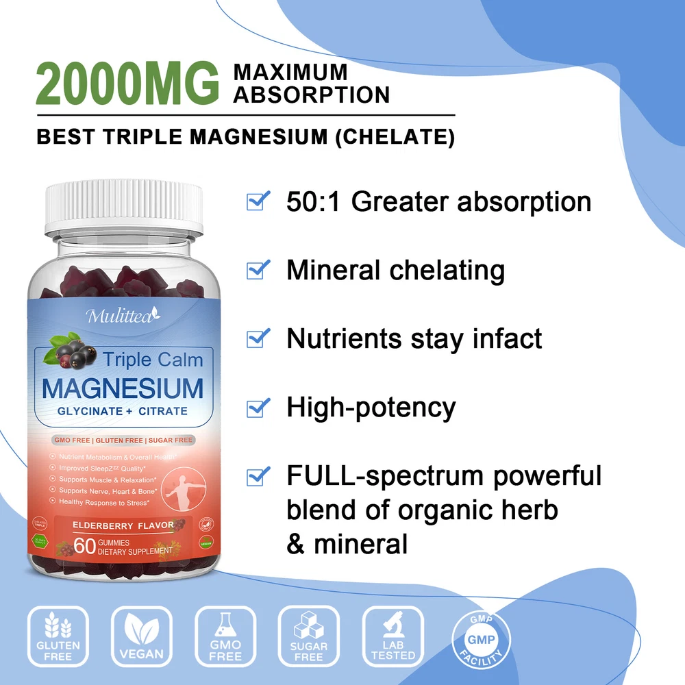 ♥♥ Features ♥♥ ♥ Magnesium supplements gummies can promotes healthy muscle, nervous system, sleep support & healthy relaxation, it can enhanced stress resistance, against leg cramps, improve your mood, help you to relax and fall asleep easily. ♥ Easy to Chew Natural Raspberry flavor Gummy is the most pleasant tasting formula which delivers multi-nutrients, you’ll find yourself reaching for more. ♥ Elderberry Flavor Magnesium Glycinate Gummies Natural raspberry juice, Pectin-based, Sugar-Free, vegan-friendly, and non-GMO, and supports keto, and vegetarian diets. No harsh additives, just clean support. ♥♥ Detail Images ♥♥