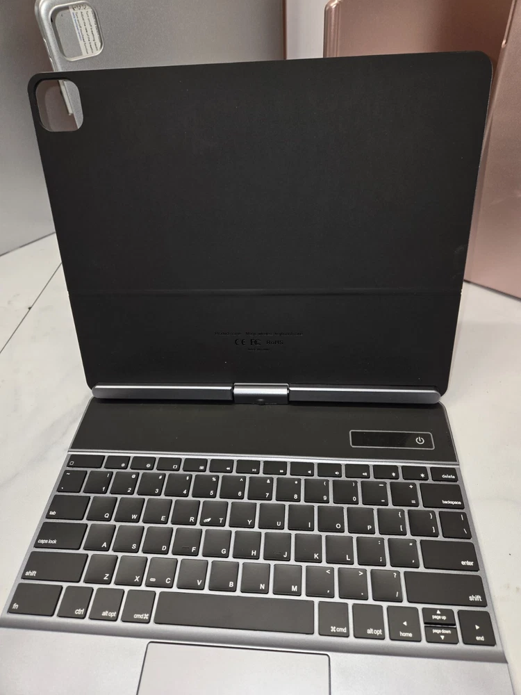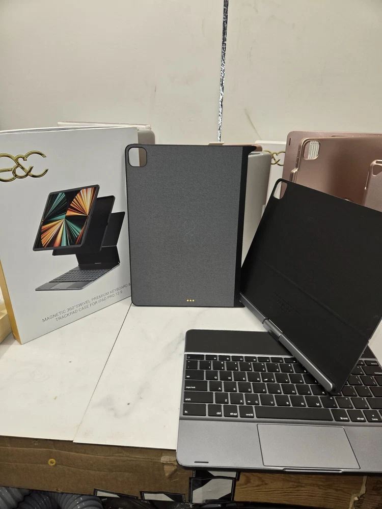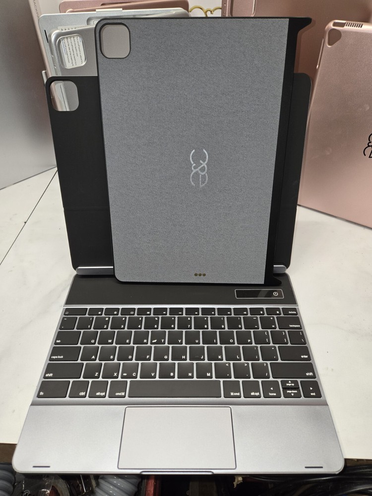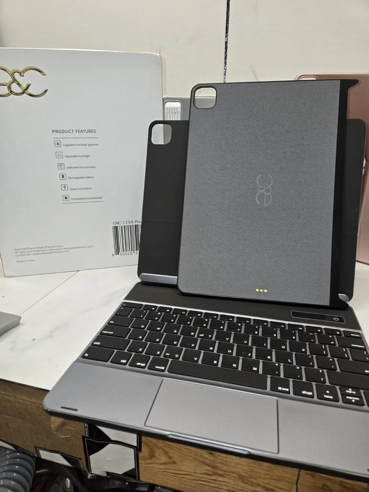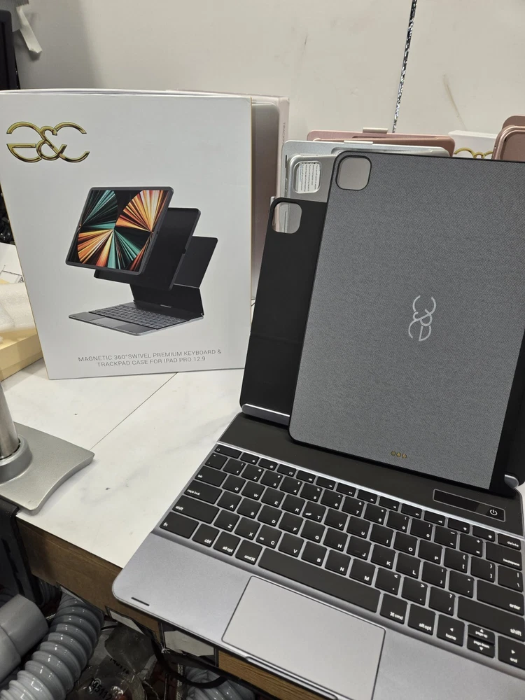 This 360° keyboard and trackpad case is the perfect accessory for your iPad Pro 12.9. It fits any 12.9-13 inch tablet and features a QWERTY (Standard) keyboard layout. The case is made of durable plastic and comes in a sleek pro gray color. It also comes with a wall charger and has built-in features such as a track ball, touchpad, multimedia integration, and enhanced function keys. The case is magnetic and has a built-in battery, quiet keys, and programmable one-touch buttons. It is foldable, portable, and has a plug & play feature. This case is ideal for anyone who wants to enhance their iPad Pro experience.