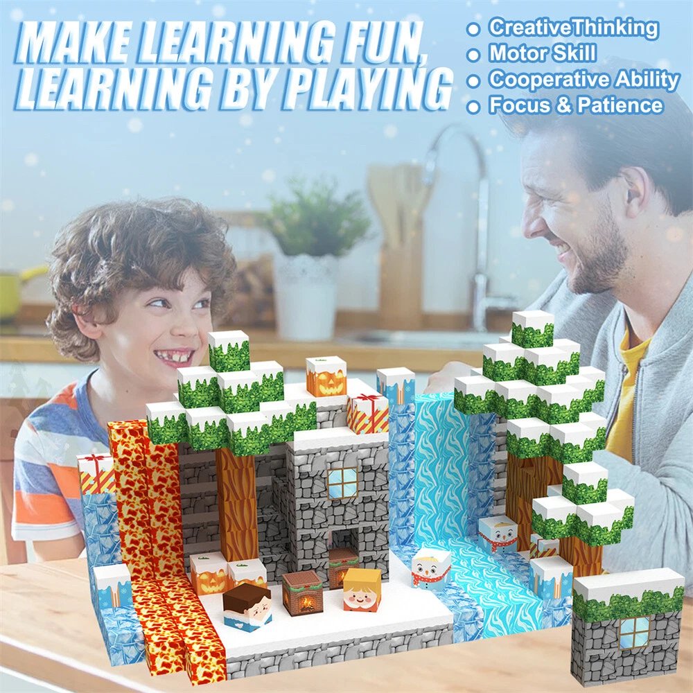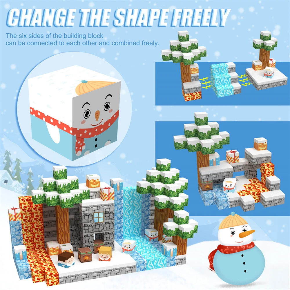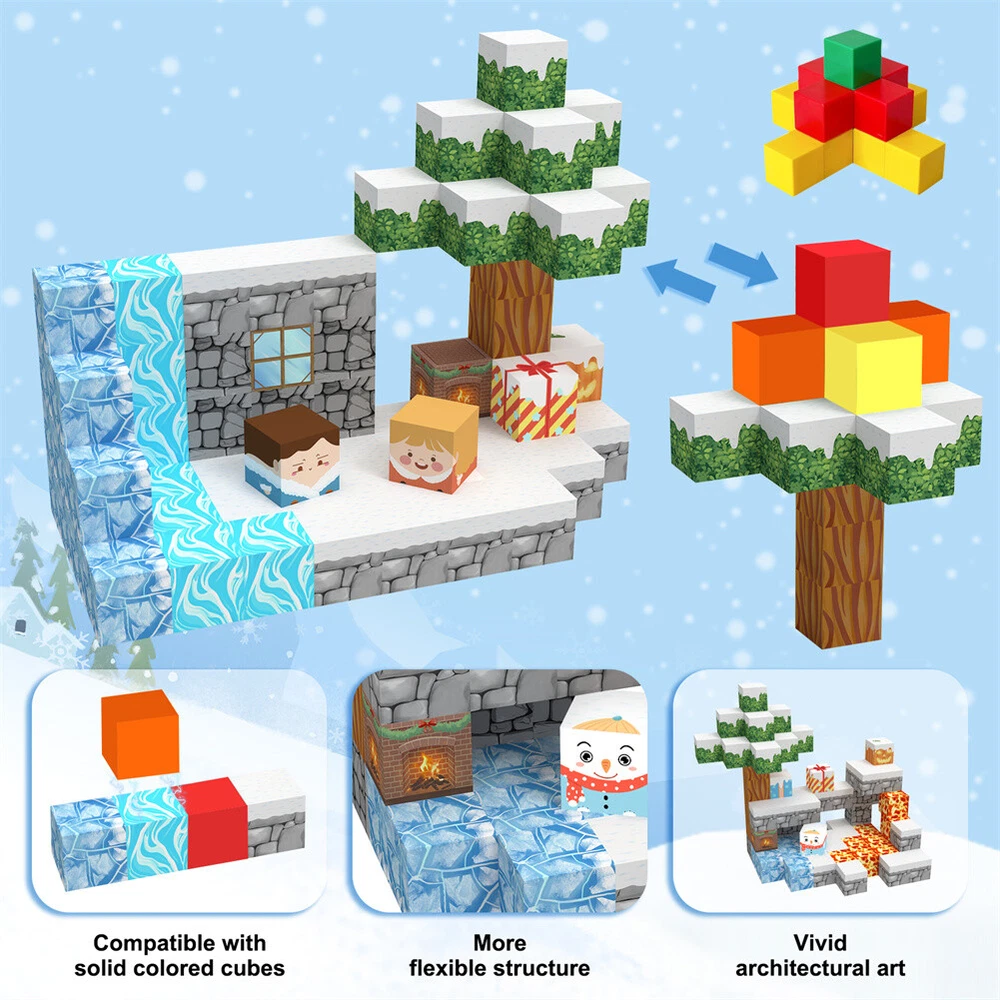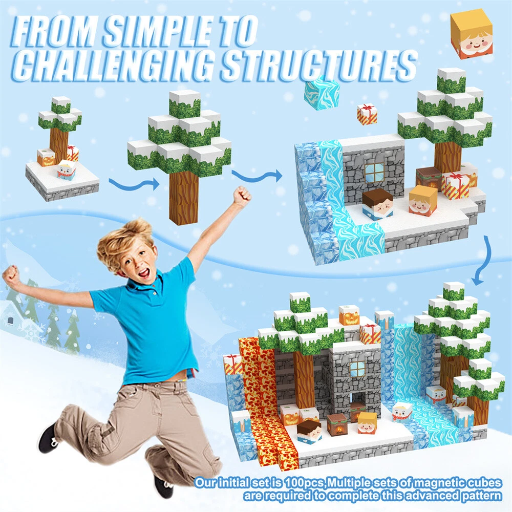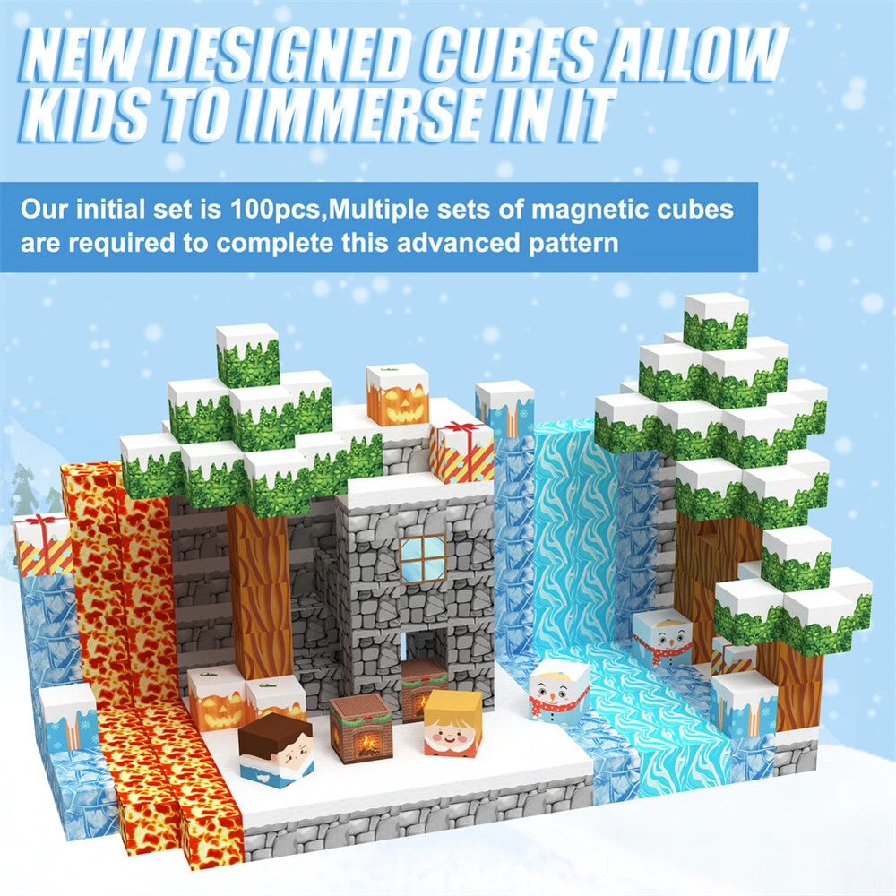 Product Description Features: - Build a Snow World Ice Cube set: Get ready to experience the fun of magnetic toys with this new magnetic cube set! Build a snow world ice cube series, add our set of character blocks, or your other toys, and start your adventure to experience the fun of role-playing and dressing up toys. Magnetic building blocks open up a fantastic world of possibilities, from simple to challenging buildings (requiring multiple sets). Let the children's imagination run wild in our magnetic open toy set - Edutainment: Building and building block toys can stimulate a variety of skills in children. Through the construction, rotation, destruction and reconstruction of magnetic blocks, it helps to improve children's creative thinking, focus and patience, cooperation, spatial and motor skills. The included creative manual guides and inspires children to explore the magnetic fantasy world. It's a fun solo activity or with friends and is a great alternative to screen time. - Extra-sensory magnetic toys for children: The 100-piece Magnetic World set combines ultraviolet technology and the science of magnetism to make your architectural art more vivid than a simple solid colored cube, offering rich patterns. More cubes, more possibilities to release children's creativity. Kids will get everything to decorate their little castle or build a snow view Ice World parking lot for their dolls to park their toy cars in - Toddler and Beginner Toy Magnetic Sets: Unlike other magnetic toys on the market, our magnetic block sets make it easier for toddlers over 1+ years old to stick the blocks together and make them strong. Round edges and the right size won't hurt small hands. The perfect STEM toy can help children gain a deeper understanding of the structural world and learn about magnetism. Recommended toy gifts for toddlers and children aged 1-12 - Excellent science gift giving idea: The fun of the magnetic cube is that it will keep kids of all ages busy for years to come. It is a fidgety children's toy perfect for classrooms, toddlers, preschoolers, teenagers 1 2 3 4 5 6 years old boys and girls. The perfect educational gift for birthdays, Christmas, Children's Day, STEM and school events. Attention: - Our initial set is 100pcs, and our main picture is divided into basic sets and advanced quantities, which vary from dozens to hundreds of building blocks, please pay attention to the scale and quantity of building, and purchase according to demand. - We put magnetic control to some challenge, develop careful observation, find building skills, and build high order patterns (watch our tutorial video). The difficulty of more than 300pcs big picture ☆☆☆☆ -☆☆☆☆☆ finally challenge it! Specifications: - Material: High quality magnet/high quality plastic - Color: as shown in the figure - Quantity: 100pcs in total - Size: The size of a single square is 2.5cm/1inch Package Included -1x 100pcs magnetic block (15 patterns) -1x Instructions