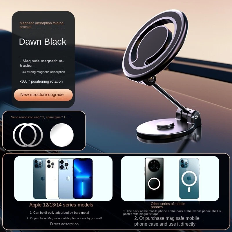 About this item 1、ExpertHolder fit for MagSafe: Our Master Magnetic Car Phone Mount with Rotation/Mag safe Function is designed to create the perfect mood for every drivers' experience. With extension arm and free angle adjustment, they can create a comfortable ambience, or a vivid, bright and refreshing driving atmosphere - which suits your car best. 2、MORE STABLE, MORE DURABLE: We has upgraded this magsafe car dash mount from 3 directions; ①Upgrade Multi-adjustment to help you find the best car mount location; ②Cell phone holder for car mount with most durable all zinc alloy design; ③Magnetic phone car mount that has the strongest magnet force, which can hold up to 12 iPhone 14 Pro Max. 3、ALL METAL BODY: The full zinc alloy body is scratch-resistant, durable, and attractive. High-made Zinc Alloy keeps your phone mount for car always looking like new. This metal car phone holder will not overheat at high temperatures, which makes it safer than plastic ones. 4、NANO 3M ADHESIVE, EXTREMELY STABLE: The adhesive strength of this upgraded mag safe dash holder is over 66 lbs. The nano-based adhesive pad has gorgeous heat resistance and heat dissipation.In an atmosphere of 122°F and -42°F, this car phone holder could not fall off with heavy things weighing 30kg for more than 72 hours.