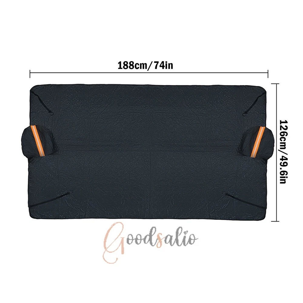 Magnetic Car Windshield Snow Cover Winter Ice Frost Guard Sun Sunshade Protector ★SPECIAL TIPS: √ Ship within 24 hours Via USPS from NJ ,USA √ 100% New & Excellent Quality √ Professional Customer Service √ Strictly QC, Each set was fully tested before shipping √ Offer delivery with Tracking Number If not 100% satisfied with our products, no-questions asked, we offer 30-day free return & money back. Product Feature 1.Aluminum Film Material: The Snow Cover is made of high quality aluminum film, which is rain and snow-proof, scratch-proof, does not hurt the car paint, and tear-resistant. 2.Multi-Directional Protection: The Snow and Anti-Freeze Body Cover can protect the front glass, side window glass, rearview mirror, multi-directional care of your car. 3.Multi-Layer Function: The Dust and Waterproof Protective Cloth has a 3-layer functional design, the surface layer is responsible for keeping out the cold, the middle layer is responsible for storing heat, and the inner layer is responsible for warming back up. 4.Invisible Magnetic Design: The Snow Cover comes with 12 invisible strong magnets, which can enhance the adhesion with the surface of the car, strong windproof without harming the car paint at the same time. 5.Reflective Warning: The Snow and Anti-Freeze Body Cover is made of enlarged earmuffs and has a reflective warning on it, which enhances the safety of the vehicle when it is parked. Product Parameter Material: Aluminum Film + Flocking Color: Black Size: 188x126cm/74.02x49.61in Products Include 1x Snow Cover