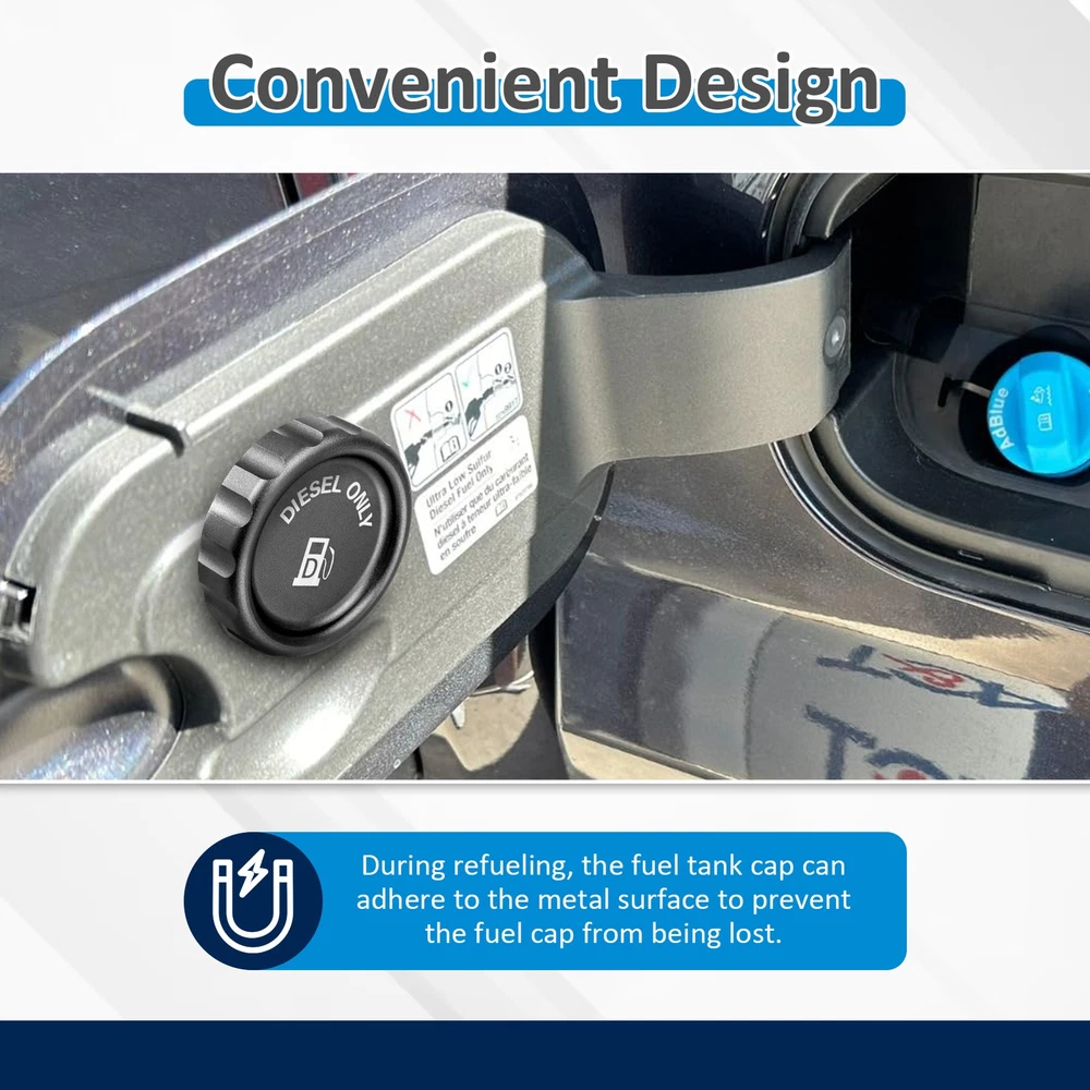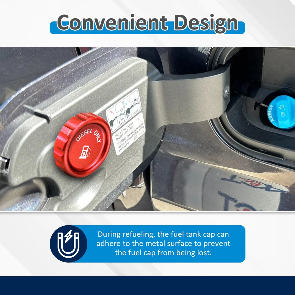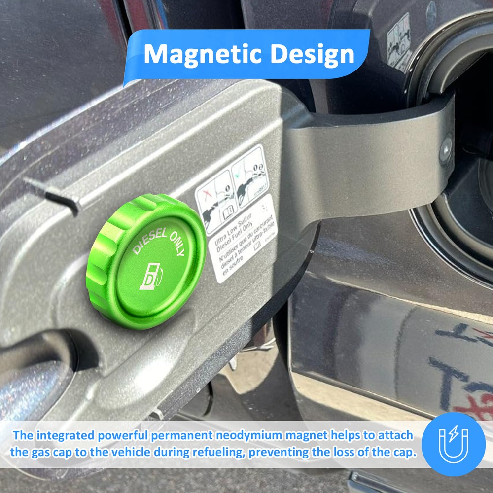 Fitment: Compatible with Chevrolet Silverado 1500/1500 LTD 2020-2024 3.0L Compatible with GMC Sierra 1500/Sierra 1500 Limited 2020-2024 3.0L Compatible with Chevrolet Tahoe 2021-2024 3.0L Compatible with GMC Yukon 2021-2024 3.0L Specifications Item: Magnetic Diesel Fuel Cap Material: 6061 Aluminum Condition: Aftermarket Brand New 【Function & Compatibility】 To prevent impurities such as rain, snow, dust, and mud from entering the fuel tank to protect the fuel system Compatible with General Motors 3.0 Diesel in 1500 pickups 【Upgrade Magnetic Process】 Using a strong permanent neodymium magnet to optimize the usage functions,which makes it has a stronger magnetic suction ability to help attach the cap to the vehicle when you fill up, preventing the loss of the gas cap. 【Durable & Lightweight】 Made of quality 6061 aluminum for strength and reduced weight. Anodized finish enhances durability, extends service life, and keeps your vehicle looking great. 【Precision Assurance & Sealing Technology】 Through Computer-aided design & Multiple Fitment Tests to ensure the perfect fit. O rings washer is included to further improve sealing, and prevent oil leaks or warnings of insufficient oil pressure. 【Easy Installation & Satisfaction Guarantee】 It only takes a few minutes to finish the installation. Just remove the old caps and directly replace them. Our powerful service team provides you a 100% satisfaction with the service and measures, which make you use our products without any worries. 【Include】 1 x Magnetic Diesel Fuel Cap
