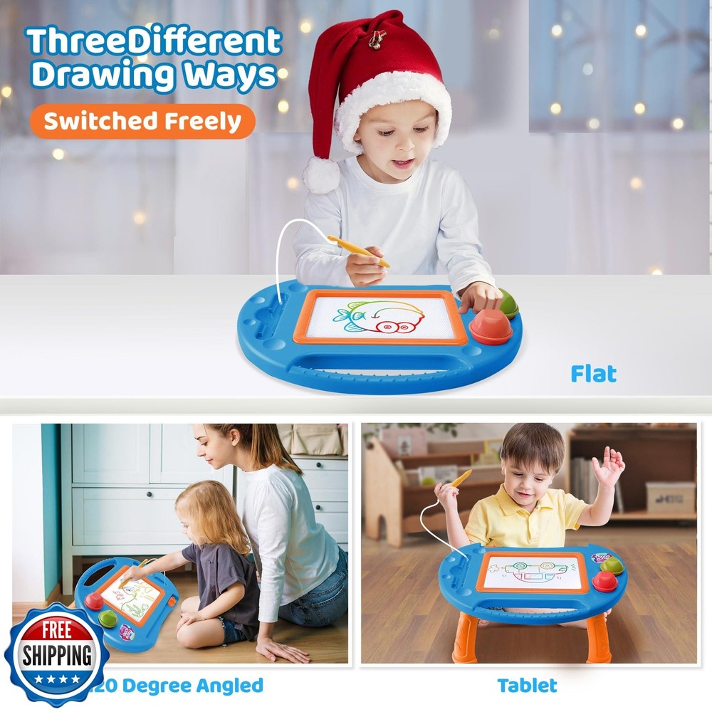Toys for 2-3 Year Old Boys Girls,Magnetic Drawing Board,Toddler Toys for Boys Age 2 3,Erasable Doodle Board for Kids,Learning Toys for Toddler 2 3,Gifts for 2 Year Old Boys Christmas Birthday Easter Features Toys for 2 Year Old Boys and Girls - Forget the broken pencils and crinkled paper, the magnetic drawing board with 4 legs is made of non-toxic, BPA-free, high-quality and eco-friendly ABS plastic material, it delivers better water-proof, durability, no-mess and stain-free service. No worry of your age 2-4 children sitting, stepping, or dragging on it, the lightweight toy is the optimal option for your toddlers Magnetic Drawing Board - This drawing board is a fantastic start to creative play for your little one! Not only can your tiny tot create masterpieces on this doodle board without a mess, but the magnetic board reveals four vivid colors as the picture is drawn. It comes with two large rounded edge magnet stamps that are easy for toddlers to take out, as well as a durable stylus with a string to draw more detailed pictures Toddler Toys for Endless of Fun & Learn - Draw, doodle and stamp then swipe clean over and over again! This colorful doodle toy has 4 color areas: red, yellow, green and blue. The bright colors and endless possibilities will encourage your child to play creatively and inspire their imaginations. Designed with easy slide eraser, which allows your toddler to wipe out the doodles through pull the slider back and forth, and then start new doodles creativity quickly Versatile Doodle Writing Board with 4 Detachable Legs - These plastic legs are easy to install and remove, which makes the magnetic drawing board table can be configured in three different ways: flat, oblique and upright. Whether it's on the floor or table, children can draw in whatever way they like. Even better, the angled position helps children develop a good sitting posture. Christmas gifts for kids, New Year gifts for toddlers, Birthday Gifts for boys, Easter gifts for girls Gifts for 2-4 Year Old Boys & Girls - Delight your tiny artist with this colorful doodle board. Perfect for toddlers who love to doodle, this toy has a great size drawing screen: 4.9 X 7.3 inch. As a lightweight portable toy, this drawing pad, makes the travel activity for endless on-the-go play and learn! It's not only wonderful toy for 18 months and up toddlers to play, but also a cool gift for 2, 3, 4 years old boys and girls on holidays and parties such as birthdays, Christmas, and much more Shipping Free & Fast Shipping: We offer free shipping to most of the USA with a normal delivery time of 3-7 days. However, due to the current situation, additional delivery time (up to 3 weeks) may be required for some items. Alternative Carriers: We may use alternative carriers (e.g., USPS, FedEx, UPS) to ensure your package arrives safely and on time. Due to the use of multiple carriers, we are unable to provide a tracking number automatically. Handling Time: Orders are processed and shipped within 1-2 business days of receiving cleared payment. Shipping Restrictions: Shipping to Alaska, Hawaii, Puerto Rico, Guam, and other US territories may incur shipping charges or delivery restrictions. Please contact us before ordering, or your order can be refunded/cancelled. State Restrictions: Certain items may not be shipped to California due to state regulations. Contact for Tracking Updates: If you require tracking updates or have any concerns about the delivery of your order, please feel free to contact us, and we will be happy to assist you. Return Policy 30-Day Hassle-Free Returns: If you are not completely satisfied with your purchase, you can return the item for free within 30 days of receiving it for a full refund or exchange. Easy Return Process: Contact us, and we will provide you with a prepaid return shipping label and detailed instructions. No Restocking Fee: There are no restocking fees for returns. However, the buyer is responsible for return shipping costs if the return is not due to a seller"s error. Refund Processing: Refunds will be processed within 1 business day of receiving the returned item in its original condition. Feedback Your feedback is extremely important to us. We strive to provide the best products and customer service possible. If you are satisfied with your purchase, please take a moment to leave us a positive review. If you have any concerns or issues with your order, please contact us before leaving negative feedback. We are committed to resolving any problems and ensuring your satisfaction. Contact Us If you have any questions or concerns, please feel free to reach out to our customer support team. You can contact us through the eBay messaging system. We are available Monday to Friday, 9:00 am to 5:00 pm EST, and we will do our best to respond to your inquiry within 24 hours. Thank you for supporting our small family business!
