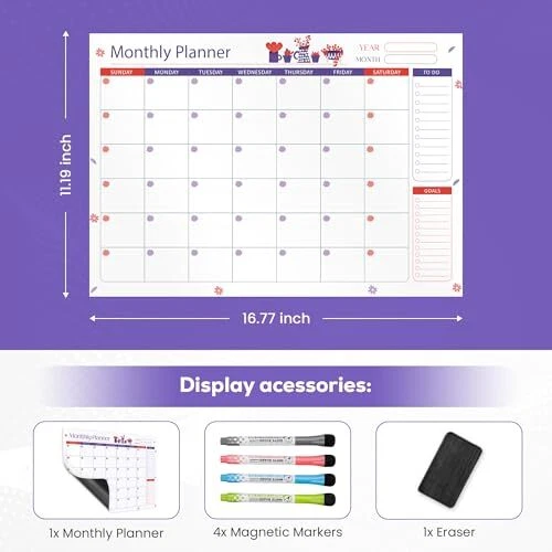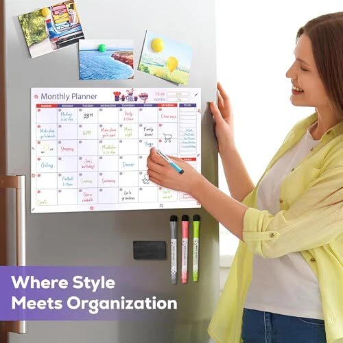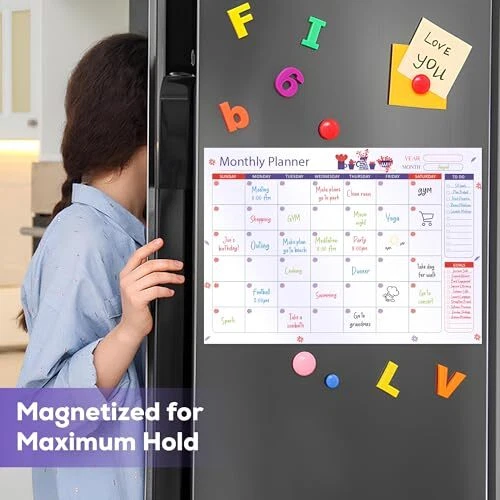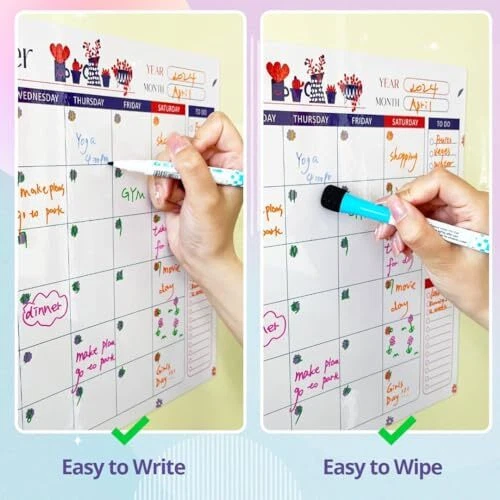 Magnetic Dry Erase Calendar for Refrigerator - Monthly,Weekly Calendar for