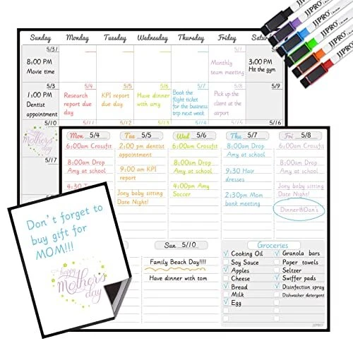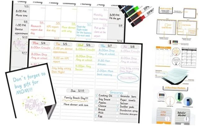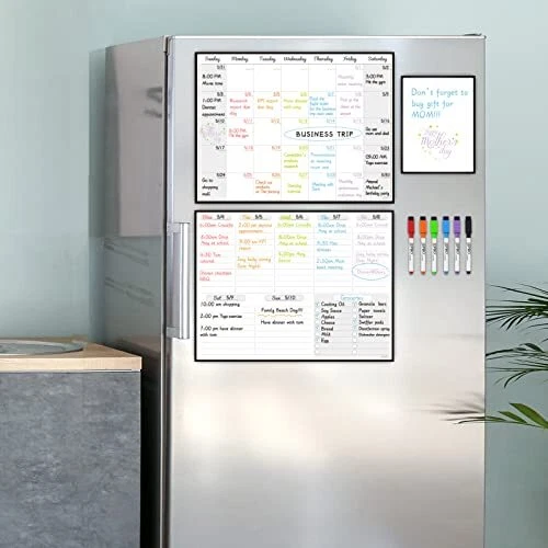 Magnetic Dry Erase Monthly Calendar and Weekly Whiteboard for Month+Week