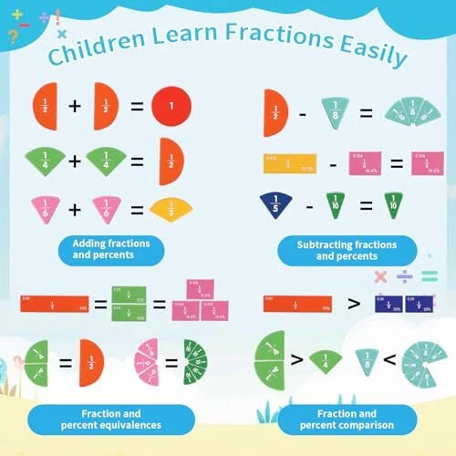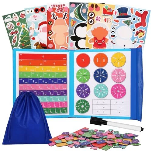 Return Policy Fast Delivery Trusted seller Magnetic Fraction Educational Puzzle - New Montessori Magnetic Book Fraction Tiles and Fraction Circles for Children,Magnetic Math Manipulatives Education Materials for Elementary School Product Description Magnetic Fraction Tiles Set:You will get 110 blocks of rectangular magnetic fractions and circular magnetic fractions,1 pen,6 Christmas Sticker Sheets.By manually combining and decomposing fractions,help students understand the relationship and significance of numerator and denominator. Magnetic Fraction Tiles & Fraction Circles:Bright colors and contrasting numbers make the learning process simple,interesting, and more intuitive,helping students understand the relationship and meaning of denominators and numerators by manually combining and decomposing fractions. Educational and Fun:The perfect tool to immerse students in interactive learning and help them master fractions easily.By fitting fraction tiles into shaded areas and writing corresponding equations,students can develop a practical and intuitive understanding of fractions. Multiple Applications:Our magnetic fraction strip puzzle blocks with magnet attached to the back can be attached to the whiteboard, refrigerator or any metal surface, book clip magnetic closure design for easier storage. Great Toys Idea For Boys And Girls:Suitable for different learning scenarios such as family tutoring and classroom teaching.It can also make a meaningful gift for your friends and family. Shipping Returns Payment Shipping Shipping is FREE to all addresses other than APO/PO boxes in the lower 48 states. All our stock ships from US-based warehouses. Shipped via USPS or UPS (depending on location and package weight) Unless stated otherwise, all orders will ship within 24-72 hours of your payment being processed. Check our feedback to see the great reviews of FAST shipping we offer. Returns Seller does not accept returns Payment We currently accept payment via eBay managed payments only. Once payment is cleared, we will dispatch your shipment within 1-3 business days. Please refer to the "Shipping" tab for more information regarding shipping speed to your destination.
