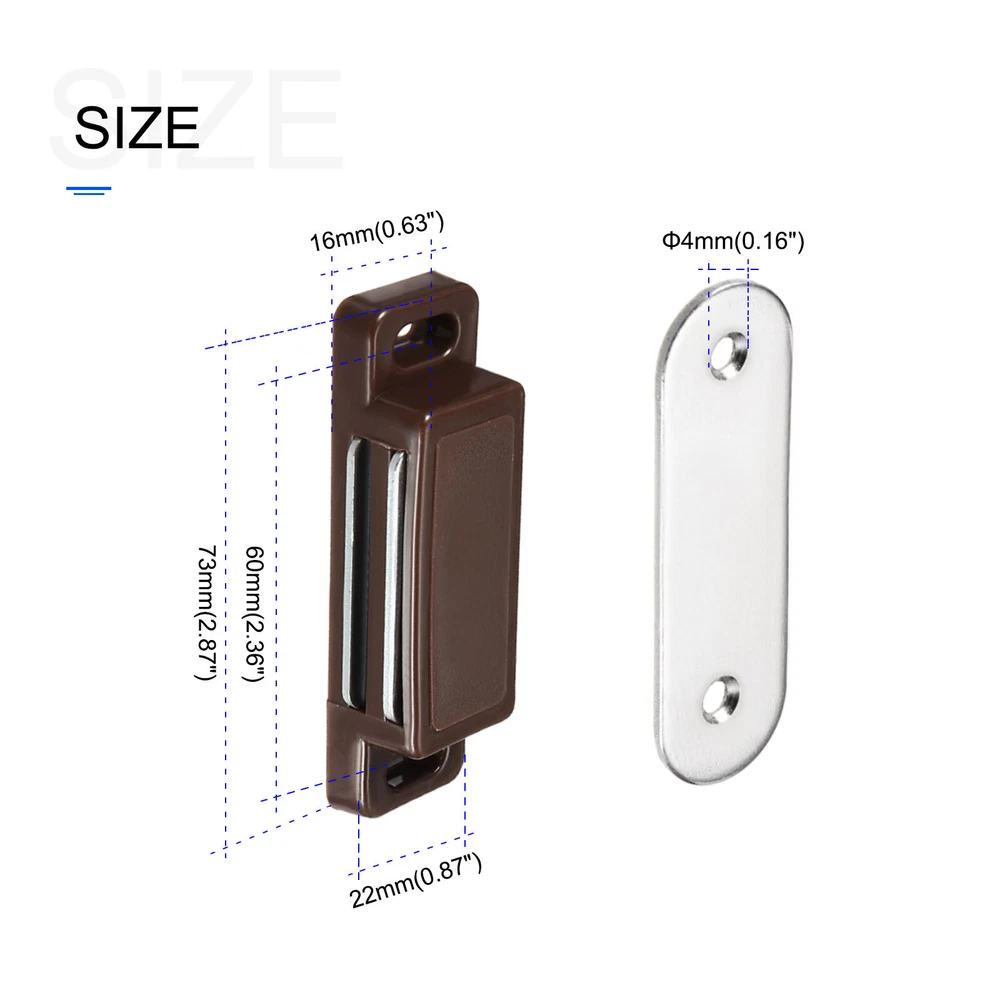 Document APPLY TO -Suitable for home furniture, glass doors, wardrobe doors, dressing tables, cupboards, wardrobes, closets, etc,Specification:Main Body Size: 73mm(L)x22mm(W)x16mm(H)/2.87"x0.87"x0.63"Mounting Hole: 9.5mm(L)x3.4mm(W)/0.37"x0.13"Metal Plate Size: 9.5mm(L)x3.4mm(W)/0.37"x0.13"Mounting Hole Diameter: 4mm/0.16"Mounting Hole Distance: 59mm/2.32"QUANTITY INCLUDED - 5Pcs x 73mm/2.87" Magnetic CatchADVANTAGE - Our magnetic door catch design is small, drawer closet magnet latch can close the door more efficiently. The magnetic force makes it difficult for your pet to open the door so that add extra safe to your home. Magnetic Latches Catch (73mm/2.87") 5Pcs, ABS Cabinet Magnet Latch Brown APPLY TO -Suitable for home furniture, glass doors, wardrobe doors, dressing tables, cupboards, wardrobes, closets, etc, Specification: Main Body Size: 73mm(L)x22mm(W)x16mm(H)/2.87"x0.87"x0.63" Mounting Hole: 9.5mm(L)x3.4mm(W)/0.37"x0.13" Metal Plate Size: 9.5mm(L)x3.4mm(W)/0.37"x0.13" Mounting Hole Diameter: 4mm/0.16" Mounting Hole Distance: 59mm/2.32" QUANTITY INCLUDED - 5Pcs x 73mm/2.87" Magnetic Catch ADVANTAGE - Our magnetic door catch design is small, drawer closet magnet latch can close the door more efficiently. The magnetic force makes it difficult for your pet to open the door so that add extra safe to your home. Hot Item Payment 1.We accept eBay payment . 2.Payment must be received within 7 business days of auction closing. Shipping 1.We ship to your eBay or Paypal address. Please make sure your eBay and Paypal address is correct before you pay. 2.Items will be shipped within 1-3 business day when we received payment. 3.Delivery time depends on destination and other factors. Description Policy Magnetic Latches Catch (73mm/2.87") 5Pcs, ABS Cabinet Magnet Latch Brown APPLY TO -Suitable for home furniture, glass doors, wardrobe doors, dressing tables, cupboards, wardrobes, closets, etc, Specification: Main Body Size: 73mm(L)x22mm(W)x16mm(H)/2.87"x0.87"x0.63" Mounting Hole: 9.5mm(L)x3.4mm(W)/0.37"x0.13" Metal Plate Size: 9.5mm(L)x3.4mm(W)/0.37"x0.13" Mounting Hole Diameter: 4mm/0.16" Mounting Hole Distance: 59mm/2.32" QUANTITY INCLUDED - 5Pcs x 73mm/2.87" Magnetic Catch ADVANTAGE - Our magnetic door catch design is small, drawer closet magnet latch can close the door more efficiently. The magnetic force makes it difficult for your pet to open the door so that add extra safe to your home. Hot Item Payment 1.We accept eBay payment . 2.Payment must be received within 7 business days of auction closing. Shipping 1.We ship to your eBay or Paypal address. Please make sure your eBay and Paypal address is correct before you pay. 2.Items will be shipped within 1-3 business day when we received payment. 3.Delivery time depends on destination and other factors.
