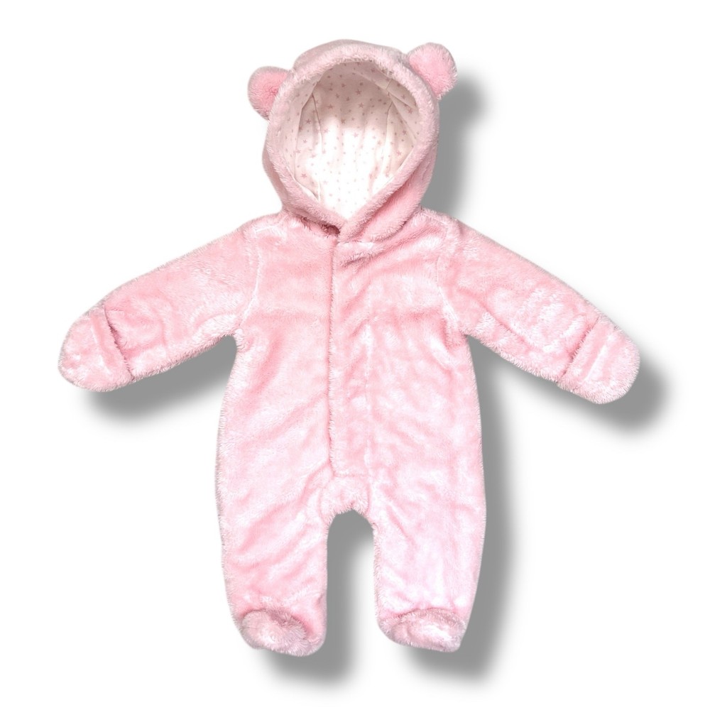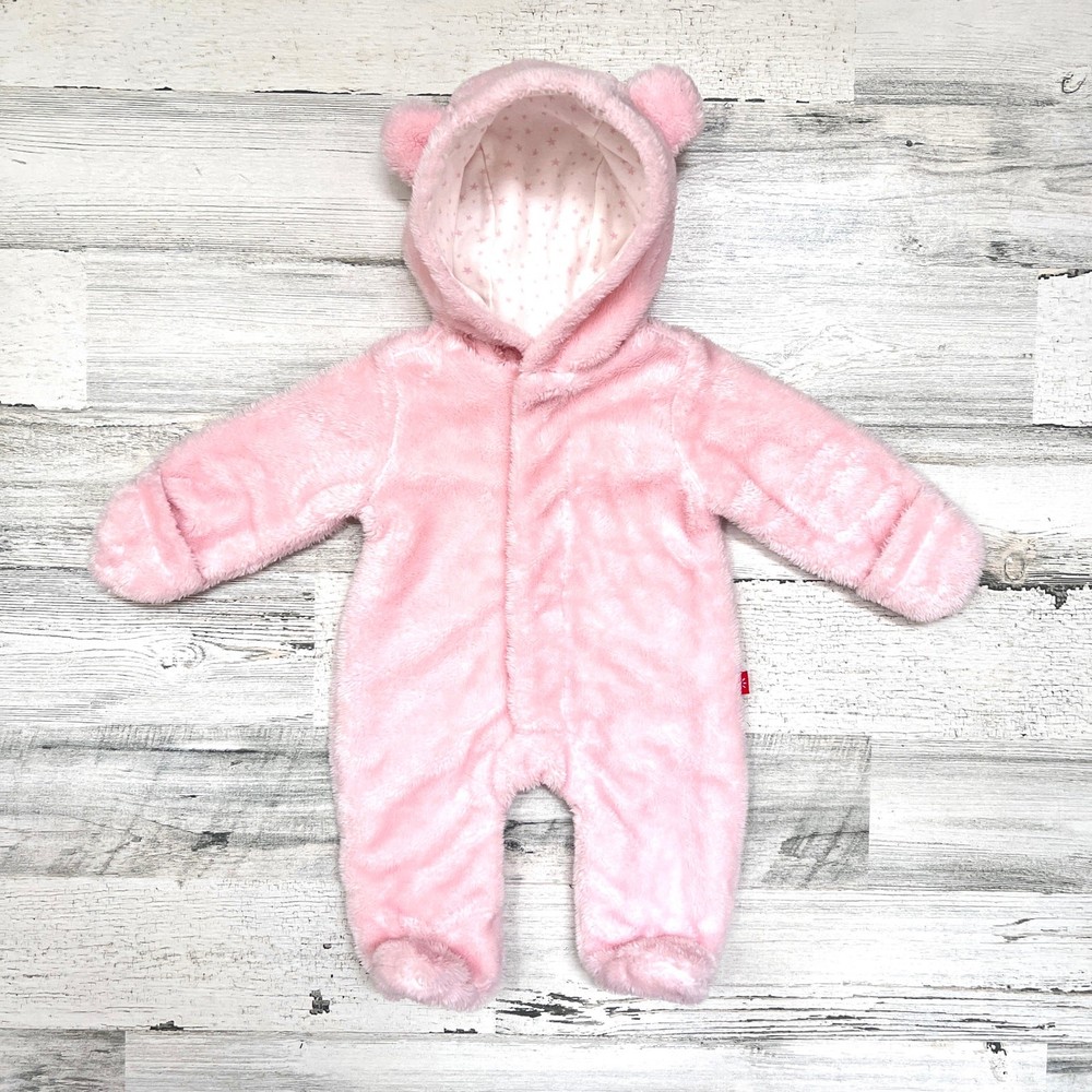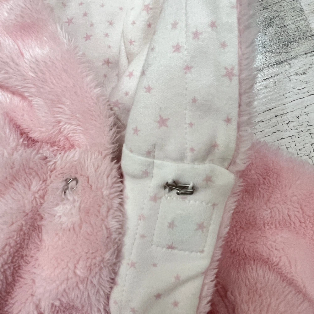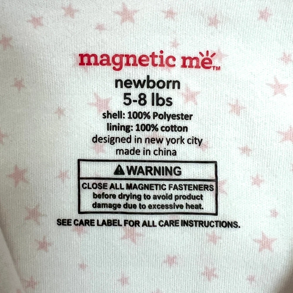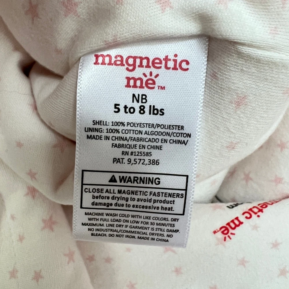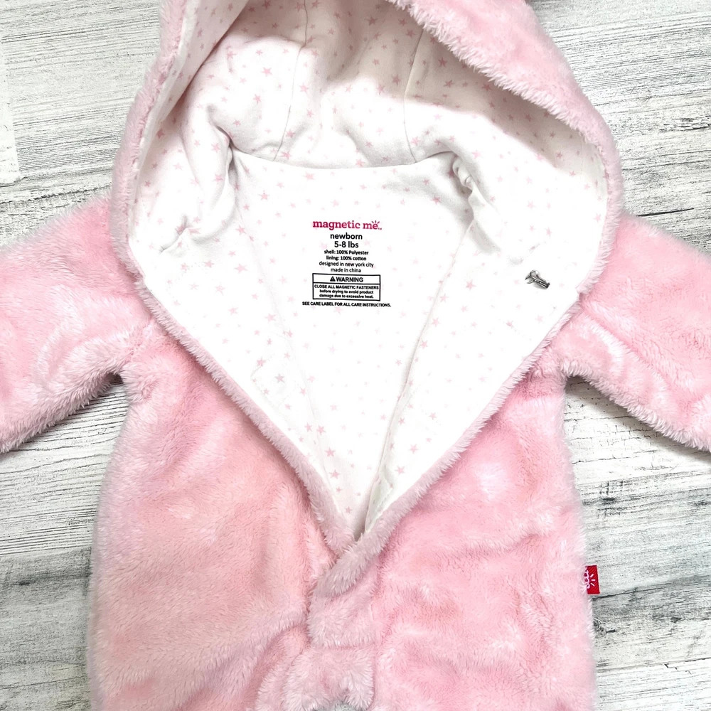 This Magnetic Me newborn pram suit is made from ultra-soft minky fleece with a cozy cotton lining in the Pink Dogwood Ditsy Stars print. Features SewSafe magnetic closures for quick, quiet changes. Warm, plush, and perfect for layering on chilly days. Styling suggestion: Wear over sleepers or daytime outfits for effortless warmth during stroller walks or car rides. Details: • Brand: Magnetic Me • Item Type: Pram Suit • Gender: Baby Girls • Size: Newborn (5–8 lbs) • Color: Pink • Material: Shell 100% Polyester Minky; Lining 100% Cotton • Style: Magnetic pram with hood • Features: SewSafe magnetic closures, soft minky exterior, fully lined, bear-ear hood • Neckline: Hood • Sleeve: Long sleeve • Closure: Magnetic front • Fit: Roomy for layering • Pattern: Solid with Dogwood Ditsy Stars lining • Occasion: Cold weather, outings, stroller, car seat safe with layers • Season: Fall, Winter • Condition: Like new • Style aesthetics: cozy, warm, plush, practical, minimalist, functional, soft, modern Ships from the USA. No customs delays, no surprise import fees. Clean, smoke-free, pet friendly home. Bundle to save!