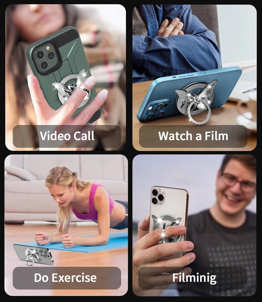 -Brand New - Never Used - Questions: Feel free to ask any Questions - BOX: Never Opened - DESCRIPTION: Ultra Strong Magnetism:Phone Grip comes with a super strong magnetic ring to hold iPhone 15/14/13/12 series and magnetic cases securely, you don't have to worry about your phone falling off. Magnetic ring fits as soon as it is attached. And it leaves no sticky residue. Even with a metal ring installed, wireless charging will not be affected Stylish Decoration:Phone holder's the perfect combination of fashion and function. The high quality silver glitter material on the phone holder shines like a diamond, perfect for the sparkling you! Whether you are travelling or using it daily, it will add colour to your attire and photos 180 sliding & 360 Rotation:phone finger holder has 360° rotation and 180°F sliding folding function, you can take photos,read and watch videos in different viewing angles. The mobile phone ring light allows you to touch more positions on the screen with one-handed operation. Suitable for multiple scenes Compatible with All Phones:The finger ring grip can be directly attached to iPhone 15, 15 Plus, 15 Pro, 15 Pro Max, iPhone 14, 14 Pro, 14 Pro Max, iPhone 13, 13 Pro, 13 Pro Max, 13 Mini, iPhone 12, 12 Pro, 12 Max, 12 Mini. Pro, 12 Pro Max, 12 Mini, or magnetic phone cases. The magnetic ring clip is also compatible with non-magnetic phones and standard cases with a thin metal ring on the back (included in the package) - OFFERS: Reasonable offers are considered, LOWBALLERS, Best price and Lowest askers will be ignored - all sales final/no refunds/ no exchanges/ no returns - Disclaimer: I do not own the brand's trademarks, logos, pictures, or products posted. I do not intend to infringe on copyright. I find such content available on the internet. Contents are considered fair use. -BBD Magnetic Phone Grip Butterfly Phone Ring Holder with Metal Ring Stylish Twinkle Tick Tock 360°Rotating iPhone Ring Grip Compatible iPhone 15/14/13/12/Plus/Pro/Pro Max,Android,MagSafe Accessories