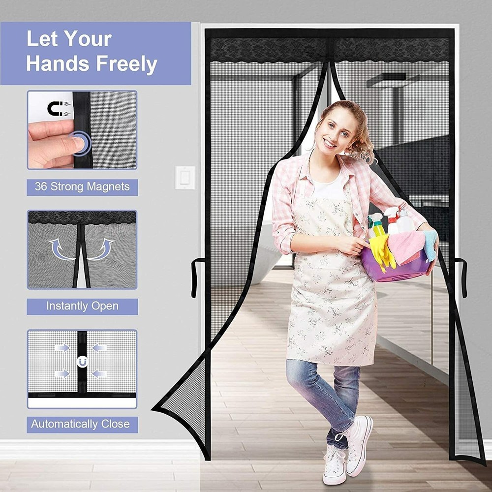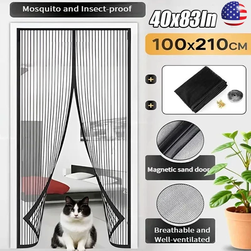 SAFE & SECURE SHOPPING 100% SATISFACTION GUARANTEED FAST SHIPPING Magnetic Screen Door Mesh Curtain Durable Heavy Duty Mosquito Net Bug Hands Free Product Description Magnetic Mesh Door Screen - Self Sealing Hands Free Mesh Partition Keeps Bugs Out Pet and Kid Friendly 39 Inch x 83 Inch (100 cm x 210 cm) BREEZY INSECT PROTECTION : Keep bugs, mosquitos, and other pests out with a screen that magnetizes behind you as you walk through it. The polyester mesh allows fresh air to circulate while it is shut. MOST SECURE : Our magnetic screen door has magnets that run along the entire screen length, and the Velcro-like strip to attach it to the door frame is also a full frame. EASY TO INSTALL : The screen Door Measures 39” x 83”, It is super simple, quick and fast to install the screen door. Simply attach it to the door frame with the included Velcro-like strips. Extra push pins are included for added security and strength. For best adhesive results, clean and dry the surface properly. KID & PET FRIENDLY : The polyester mesh fabric is durable enough to withstand thousands of uses, it is also lightweight enough for children and small dogs and cats to walk through and open without using hands. PACKAGE INCLUDES : 1 Unit of Magnetic Mesh Door Screen & Pins & Double-Sided Adhesive Hook and Loop Tape About Us Shipping Returns About Us 🚚🚚🚚 β€œ Fast delivery ” ⭐⭐⭐ β€œ Quality Assurance ” πŸš€πŸš€πŸš€ β€œ Worry-free after-sales service ” Shipping Fast shipping is very important for us. Our standard shipping service is FREE. Your order will be shipped within 1-3 business days upon full payment received. Most items are delivered within 3-5 business days, however, please allow 3-10 business days. We are shipping only to USA. We only ship to the confirmed Paypal address. We reserve the right to cancel any order for any reason at any time. We are not responsible for undeliverable addresses. Returns We offer a 30 day return policy from checkout winning date. Your satisfaction is guaranteed! If for any reason you are unhappy with your item, just return it within 30 days for a full refund, minus shipping cost. Please contact us prior to initiating a return so that we can issue you a refund authorization. Items defective upon receipt must be packaged in their retail packaging as if new and returned with a detailed description of the problem. Return shipping fees are not refundable. We reserve the right to decline any returns if the above guidelines are not followed. Copyright Β© 2022 Tongtool