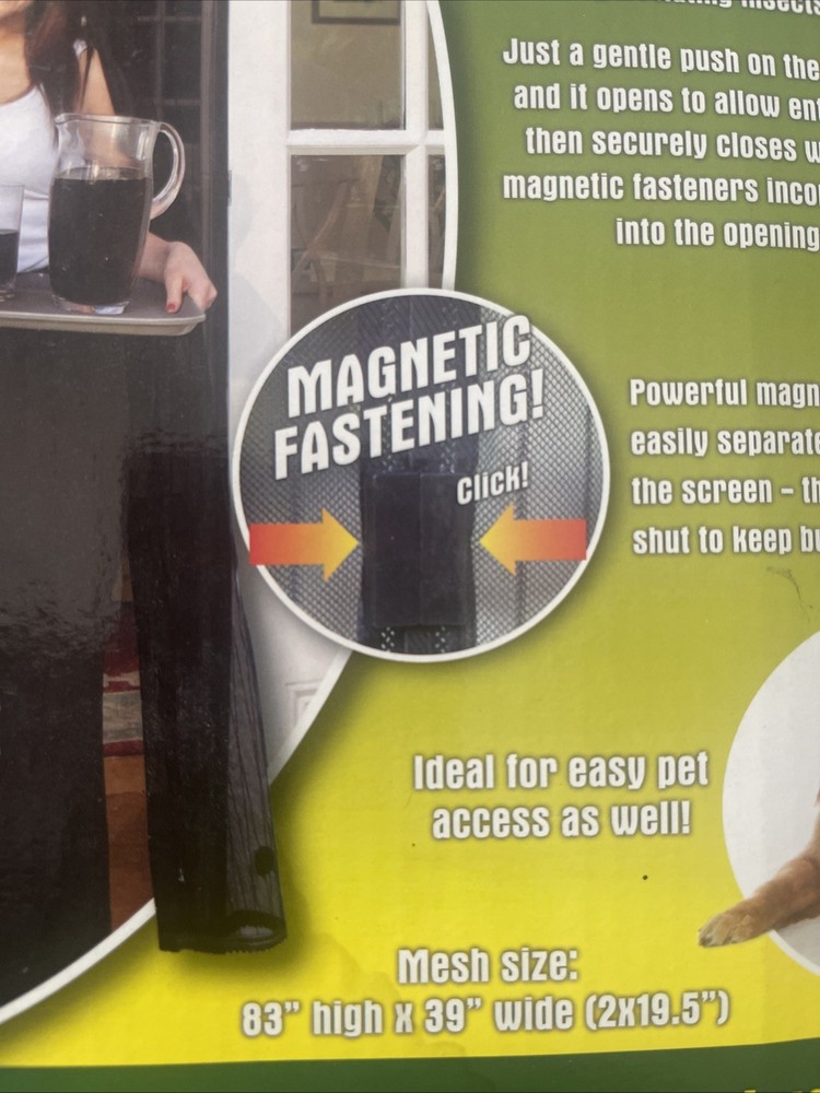 The Magnetic Screen Door is a classic hands-free mesh partition designed to keep bugs out of your home. Made of durable polyester material in a mesh color, this 38"x83" screen door features a self-sealing design that ensures a secure closure. With no assembly required and weighing 15.9 ounces, this convenient accessory is suitable for any screen door and provides a hassle-free way to enjoy fresh air while keeping pests at bay.