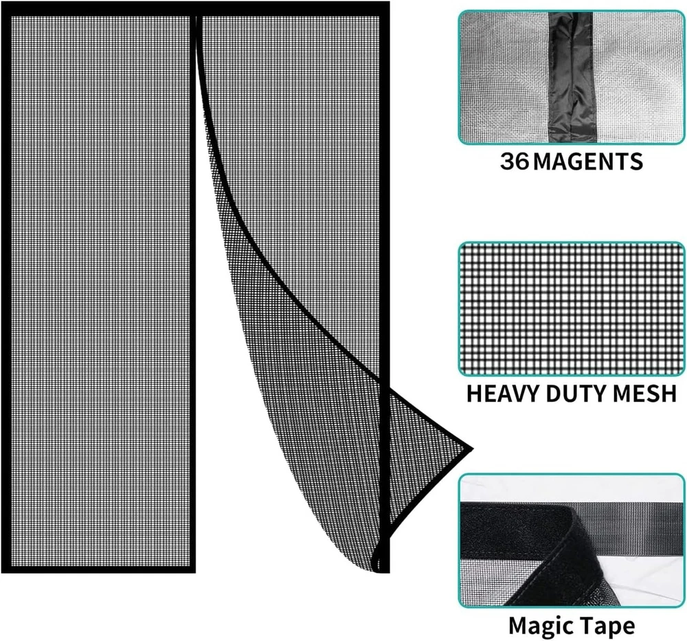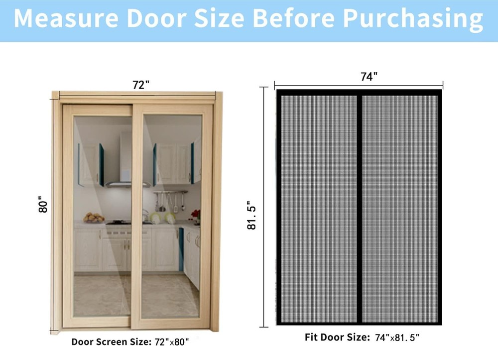 Malla magnética para puerta mosquitera que se adapta a puertas de 72x80pulgadas Features: 【Tamaño de la cortina de puerta magnética】El tamaño real de esta cortina de puerta magnética negra es de 74" de ancho x 81.5" de alto, y se adapta a puertas de hasta 72 x 80 pulgadas. La cortina se pega al marco de la puerta, ¡mide tus puertas antes de realizar el pedido! Diseñada con imanes y sellos magnéticos, la cortina de malla de la puerta se cierra con las manos libres más rápido, más silenciosamente y más cerca. 【Material de fibra de vidrio duradero reforzado】En comparación con la malla de pantalla de nailon o poliéster anterior, el material de fibra de vidrio de primera calidad es más fuerte y duradero, a través del moldeo a alta temperatura para que sea ignífugo. La puerta de pantalla magnética es resistente a la corrosión química, antidesgarro y de alta densidad. Se puede reutilizar muchas veces. Además, la cortina de puerta de fibra de vidrio tiene una mejor transmitancia que las pantallas de poliéster tradicionales, lo que le brinda una mejor experiencia de visión. 【Cerrado automático y manos libres】El potente imán incorporado y los palos de gravedad adicionales permiten que sus pequeños y mascotas caminen de manera amigable, manos libres, 36 piezas cosidas en puntos magnéticos fuertes hacen que la cortina de malla de la puerta mosquitera sea más cercana y estable, que se usa para consolidar y evitar que el viento se la lleve. 【Fácil de instalar】No se requieren herramientas, simplemente retire el adhesivo de las tiras de velcro y aplíquelo al marco de la puerta. La cortina de pantalla utiliza el diseño de cinta mágica de marco completo que le permite quitar la cortina de malla en cualquier momento, para asegurarse de que la pantalla en su lugar sea mucho más estable, se proporcionan pasadores de empuje adicionales. 【Diseño de cinta de velcro de marco completo】La malla de fibra de vidrio duradera es más pequeña que la vieja malla de poliéster, tiene una mejor transmisión de luz, permite que pase más aire fresco y luz solar que la pantalla de poliéster. La cortina de pantalla utiliza el diseño de cinta de bucle, cinta reforzada a lo largo de cada pulgada, que le permite quitar la cortina de malla en cualquier momento, para que pueda doblarla para guardarla fuera de temporada. 🌟 If you need more quantity than shown available - just send me a message and I'll increase the purchased limit for you 💐 SHIPPING We are always working hard to ensure your package arrives as soon as possible. Please understand that some factors like weather, high postal traffic, and the performance of shipping companies are outside of our control. We offer free shipping to the lower 48 states and ship within up to 5 business days of payment, usually sooner. We do not accept P.O. Boxes. Please provide a physical address. Thank you.