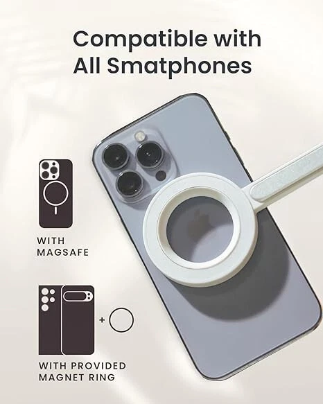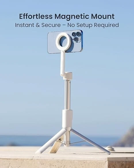 Quick and Easy Setup: The MagSafe tripod mount offers a hassle-free, quick-release design; Strong N52 magnets ensure a secure attachment,making it perfect for capturing spontaneous moments without fumbling with clamps; Ideal for content creators and photographers seeking efficiency Powerful Magnetic Holder: Featuring N52 magnets with a magnetic force up to 6.6 lb, this magnetic tripod for iPhone provides a stable and secure hold; Whether you're shooting videos at the gym or taking photos on the golf course, your phone stays firmly in place Adjustable and Rotatable: The MagSafe tripod mount can be adjusted up to 210° vertically and allows 360° rotation of the phone, providing flexibility for different shooting angles; This makes it ideal for capturing diverse perspectives in any scenario Versatile and Extendable: The seven-section aluminum rod extends up to 64.2 inches in tripod mode, catering to various shooting needs; From desk setups to outdoor photography, this phone tripod stand is versatile and reliable Portable and Lightweight: Weighing only 13 oz and folding down to a compact 12 inches, this MagSafe selfie stick is perfect for travel and outdoor adventures; Its collapsible design makes it easy to carry, ensuring you never miss a moment on your journeys Wide Compatibility: Designed for iPhone 12/13/14/15/16 Pro Max Mini and official MagSafe cases, this iPhone tripod mount attaches directly without the need for metal plates; For Android phones and non-MagSafe cases, the included metal rings provide secure attachment, ensuring universal compatibility Detachable Bluetooth Remote: Equipped with a detachable Bluetooth remote, this phone tripod allows you to take photos conveniently from a distance; Perfect for group photos, solo shots, and capturing various scenes effortlessly